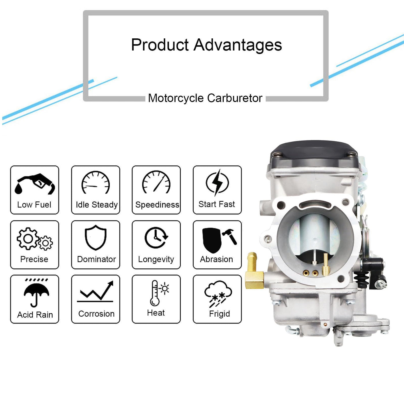 Q: Is the CV40 Carburetor a direct replacement for my existing carburetor?A: Yes, the CV40 Carburetor serves as a direct replacement for many Harley Davidson carburetors, requiring little to no adjustment for installation, allowing your engine to run like new.