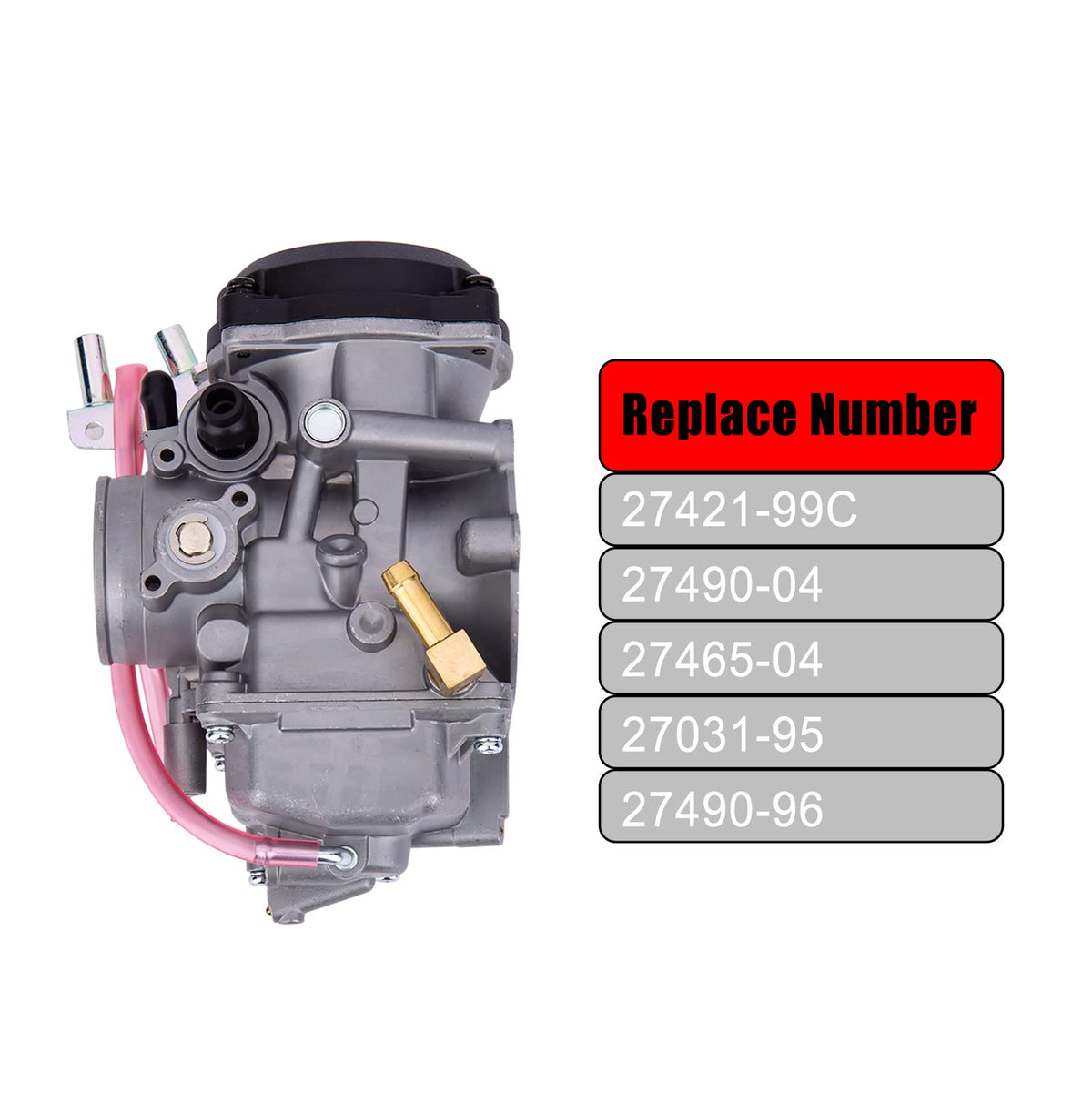 Q: What features does the CV40 Carburetor offer?A: The CV40 Carburetor features a 40mm inner diameter on the intake side and a 57mm inner diameter on the air filter side. It comes with stock main and slow jets, along with extra main and pilot jets for customization. Additionally, the package includes necessary components like fuel lines, a fuel filter, and a choke cable, making installation straightforward.