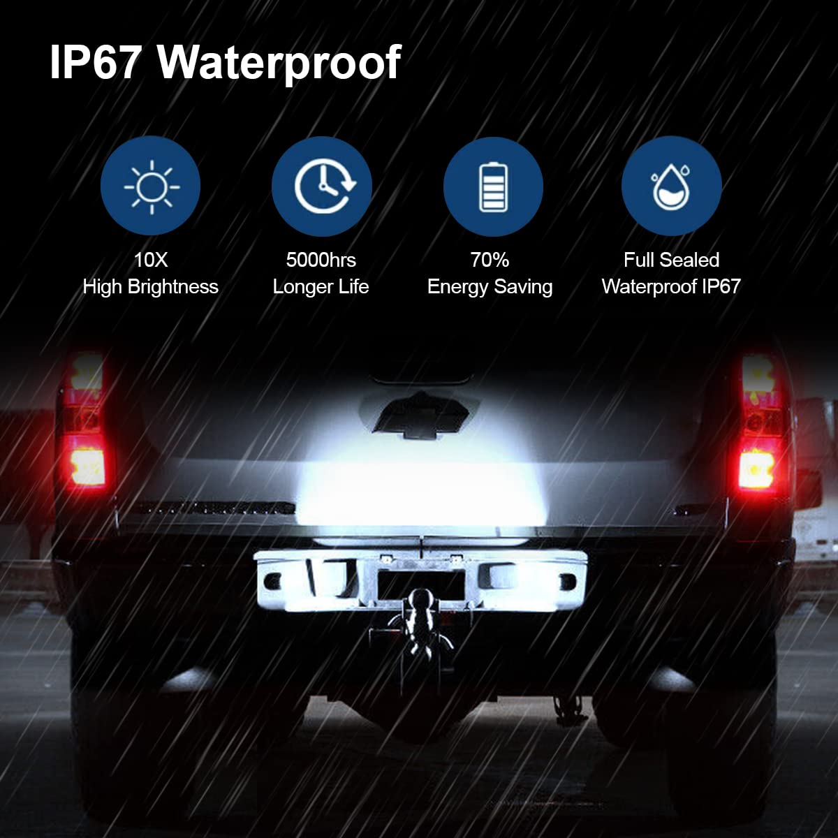 ?Fitment List?: 1999-2013 Chevy Silverado 1500/GMC Sierra 1500, 1999-2004 Chevy Silverado 2500/GMC Sierra 2500, 2001-2007 Chevy Silverado 3500/GMC Sierra 3500, 2007-2013 Chevy Silverado 3500 HD/Avalanche/GMC Sierra 3500 HD, 1999-2013 Chevy Silverado 1500 2500 HD/GMC Sierra 1500 2500 HD, 2000-2006 Chevy Suburban 1500 2500/Tahoe/GMC Yukon, 2002-2006 Cadillac Escalade, 2002-2013 Cadillac EXT, 2000-2006 GMC Yukon XL 1500/XL 2500. | ?High Intensity LED Chips?: Built with 100% advanced high brightness LED chips with intensity lighting output and low power consumption, which was 10x brighter than factroy light bulbs, dramaticly improved the lighting on rear license plate visibility and safety while driving at night. Direct upgrade replacement part to replace the old or defective OEM license plate lights. | ?High Quality Performance?: These license plate lights are much brighter than stock lights. Built-in high power 18 SMD LED chips, made of high quality PC lens and chrome ABS plastic housing, 6000K white bright lights output maximize illumination and IP66 rated waterproof. Canbus LED control unit design, no error code. | ?Easy Installation?: Plug and Play insert to install in just minutes, Non-polarity sensitive, OEM Perfect fit and direct replacement, no need for any resistors or special modifications. Remove original housing bulbs and insert the upgrade version lights plug into the factory socket. | ?Package Including?: 1x pair of right and left side chrome LED license plate lights. Product Come with 1 year warranty and lifetime support to Ensure 100% Satisfaction.