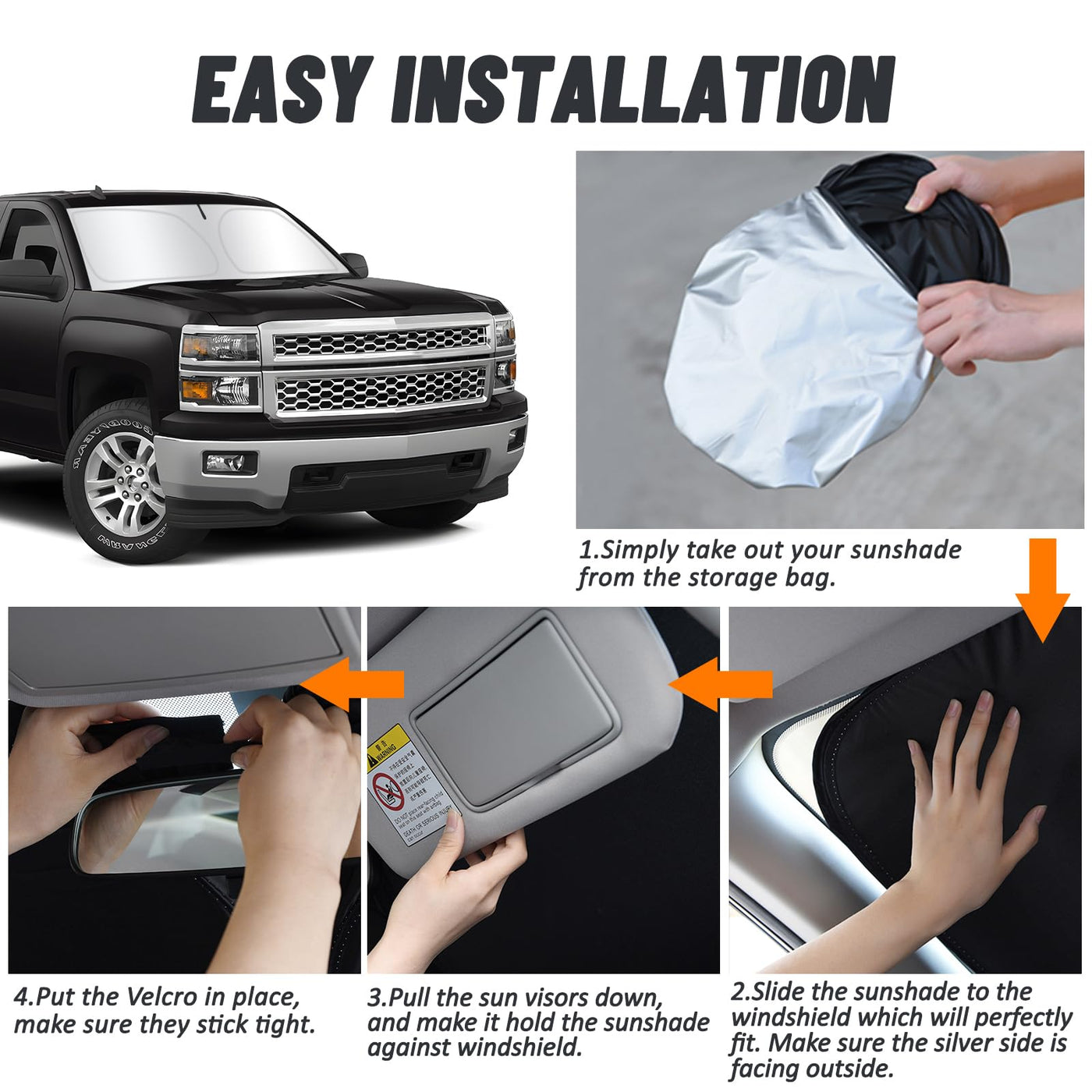 D-Lumina Windshield Sun Shade For 1999-2006 Chevy Silverado 1500 Accessories Truck Extended Cab, Front Window Sunshade Sun Visor