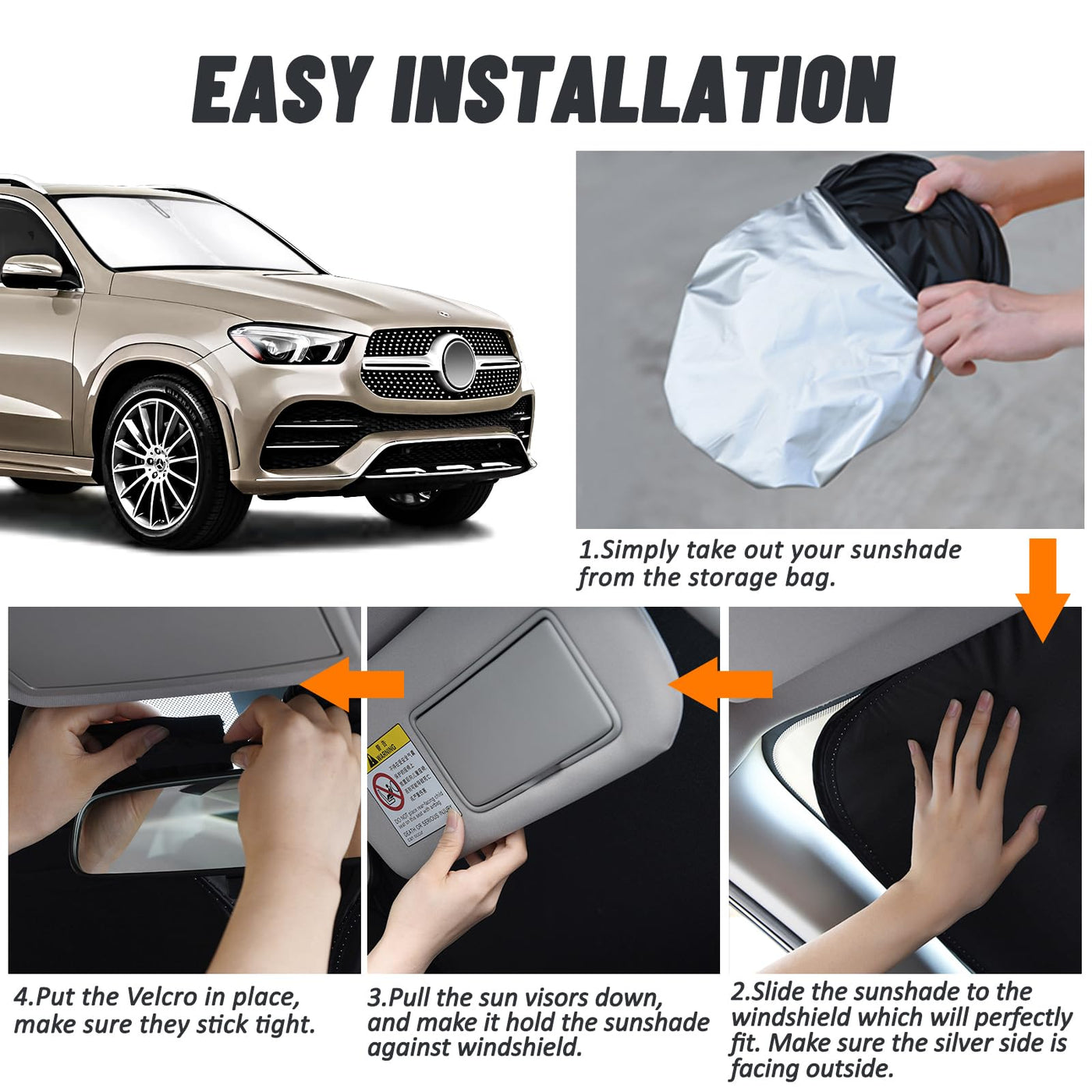 Q: Is the installation of the sunshade complicated?A: No, the D-Lumina Windshield Sun Shade is designed for easy installation. It can be set up in just minutes without any modifications required, and it fits snugly to stay in place.