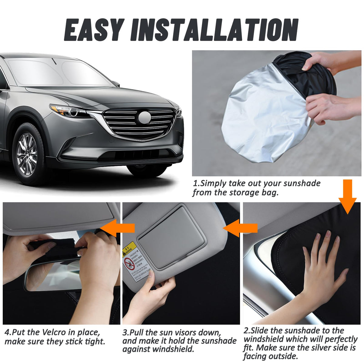 D-Lumina Windshield Sun Shade for Mazda CX-9 2016-2025 CX9 Accessories, Front Window Sunshade Sun Visor Protector Block UV Rays Heat, Foldable 2 Layers 210T Material