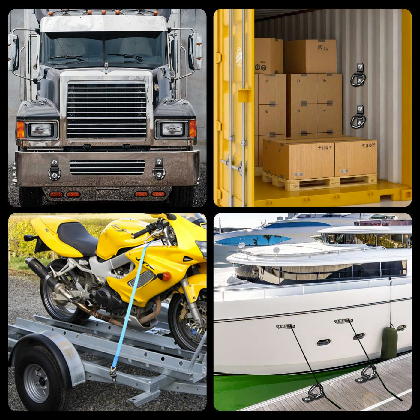 Q: Can I use these D Rings for securing motorcycles and ATVs?A: Absolutely! These D Rings are designed to be used as tie-down anchors for motorcycles, ATVs, and other powersport equipment, providing a secure way to transport them.