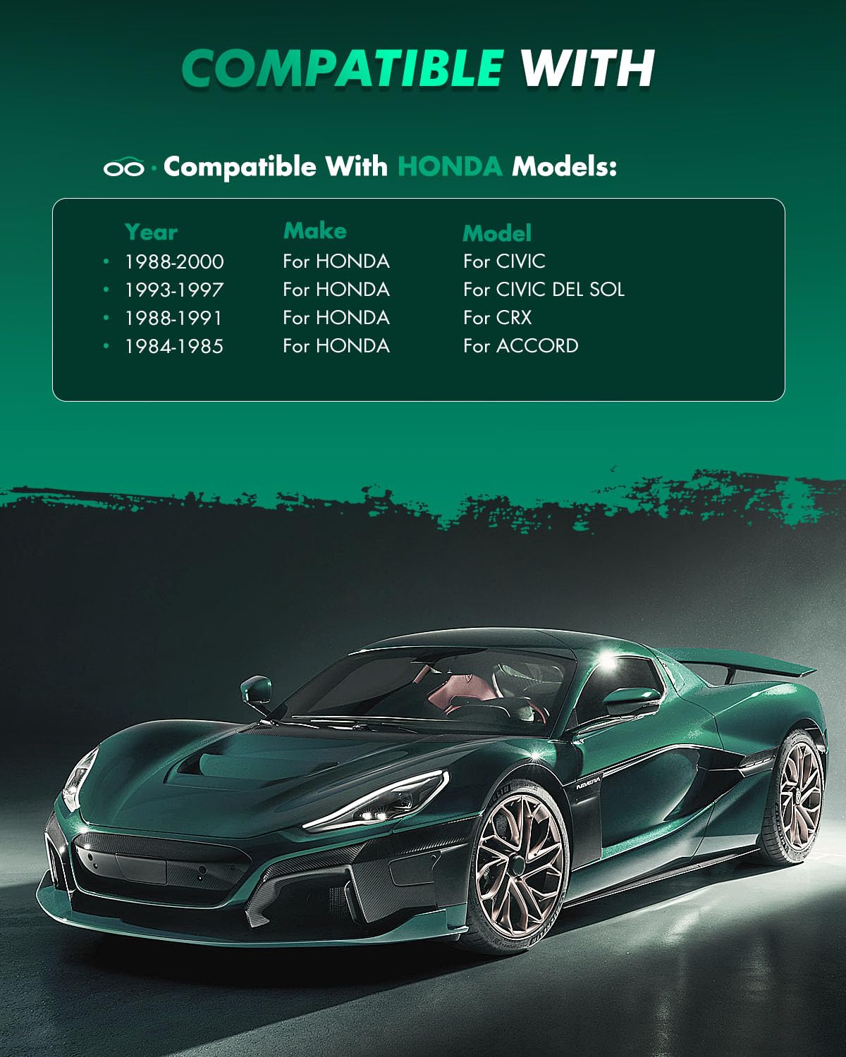 Compatibility information: 1988-1989 For Honda Civic 1.5LSpecifications: Placement on Vehicle: Front Rear Left RightPad Compound: Front Semi-Metal & Rear CeramicOEM PART NUMBER(S): 4 x Front Brake Pads - D373-72634 x Rear Brake Pads - ATD374C,D374-7233Package contains: 8 x Brake Pads