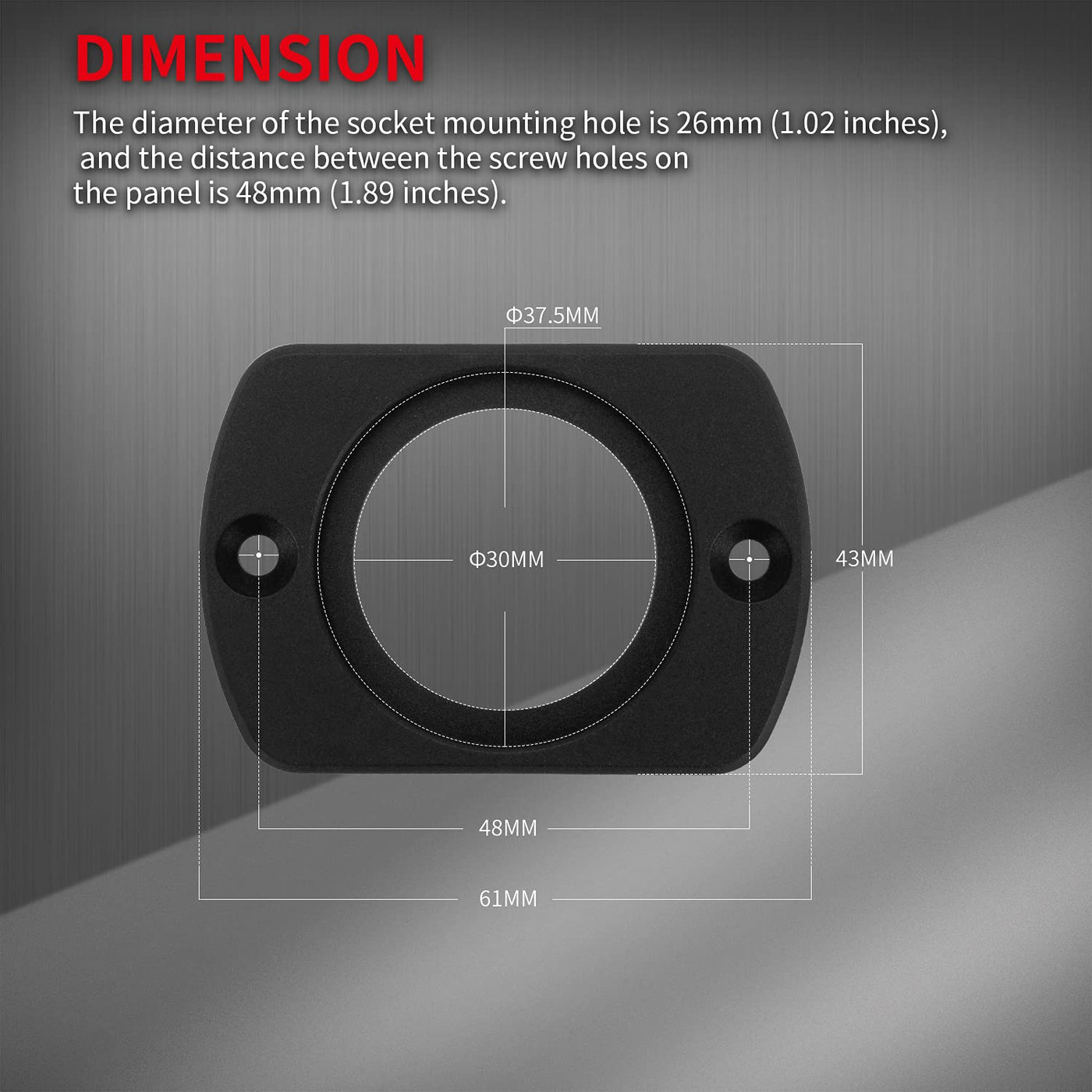 Q: What is the size of the mounting hole required for the DaierTek 12V Cigarette Lighter Socket?A: The DaierTek 12V Cigarette Lighter Socket requires a mounting hole size of 29mm.