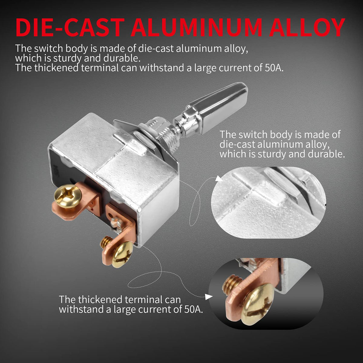 Daiertek Heavy Duty 50 Amp 12V Toggle Switch Automotive 2 Position On Off Rocker Switch Spst 2 Pin Metal Chrome Plated Screw Terminal (2Pcs)