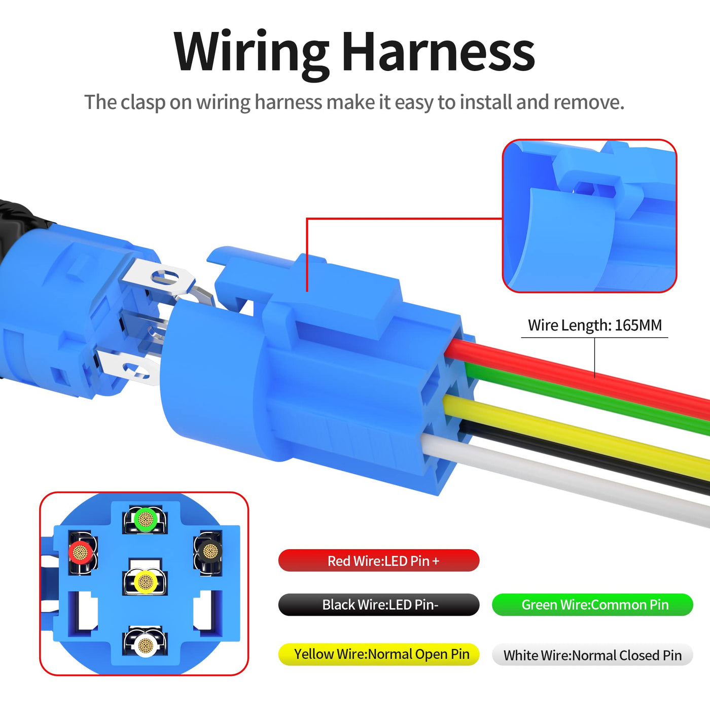 ?Red LED Lighted? - This horn button switch is a momentary design switch, SPDT 1 NO and 1 NC design, with red LED illuminated, which can be wired to dash light to help you easily locate the horn switch button in dark. ?Rating & Mounting Hole Size? - Rating: 5A, 12V push button horn switch. The mounting hole size for this horn button 12v is 16mm. ?Wiring Harness? - The wiring harness that come with this 12v horn button is clasp design, which makes it easier to remove the harness from the horn push button while pressing the clasp. ?Waterproof? - This stainless steel metal marine horn button will also come with an o-ring to enhance its waterproof performance, makes it safer for marine use, suitable for boat, automotive, car, etc. ?What you get? - 1 x horn switch 12v, 1 x wiring harness, 1 x wiring diagram, 1 Year Warranty, 24H Fast Respond Customer Service.