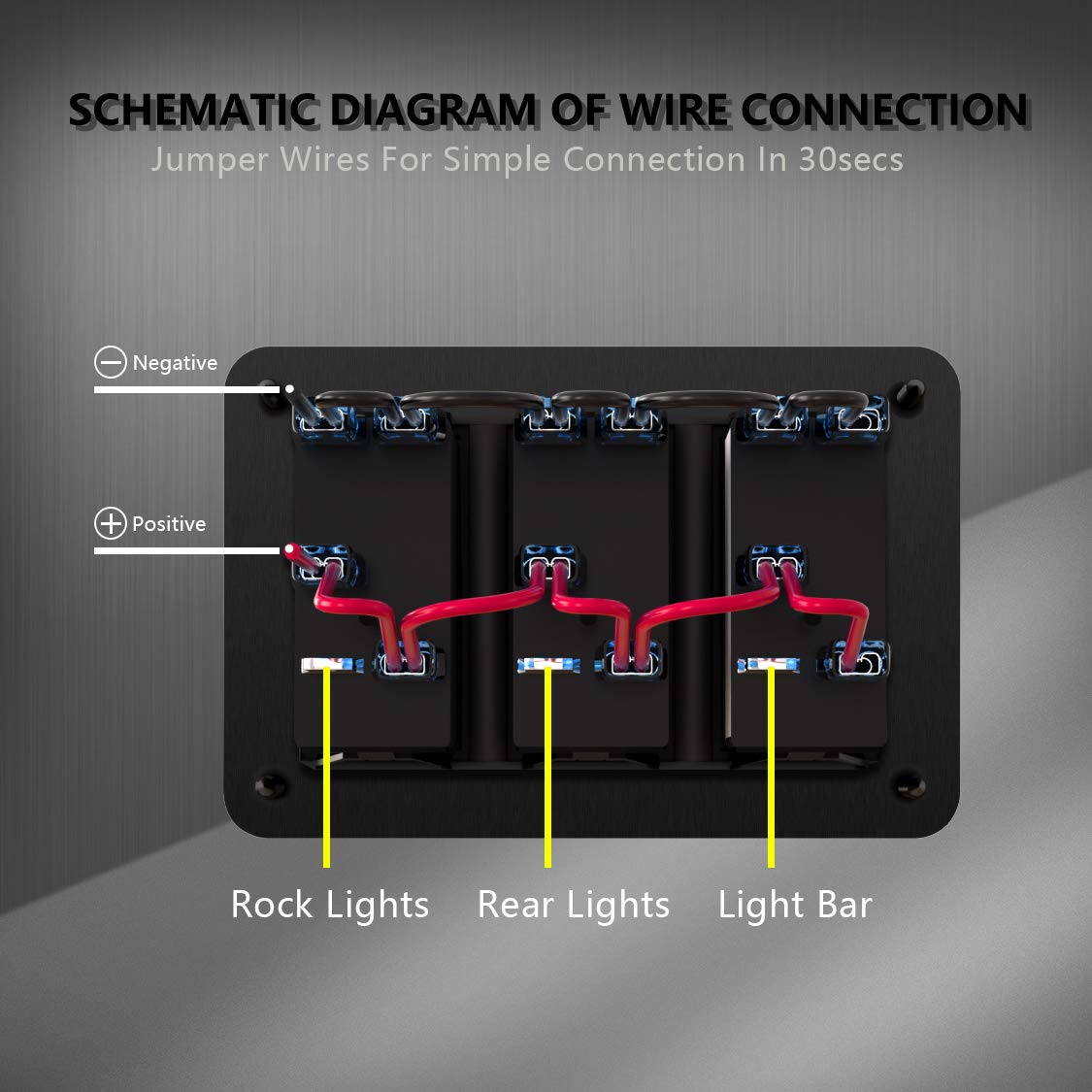 Daiertek Led Light Bar Switch Panel, 3 Gang Rocker Switch Panel, 12V Toggle Switch Panel For Truck Car Rzr Jeep Rv Automotive Marine Boat Blue 12 Volt Switch Panel Waterproof