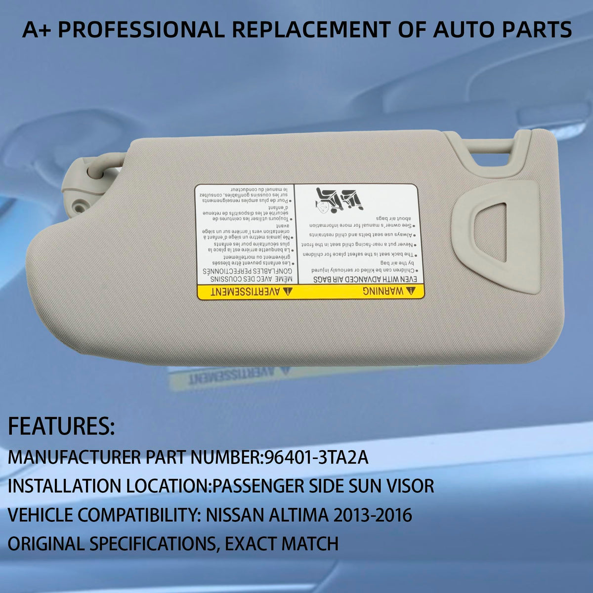 Dasbecan Gray Right Passenger Side Sun Visor Compatible With Nissan Altima 2013-2018 With Mirror And Vanity Light Without Sunroo