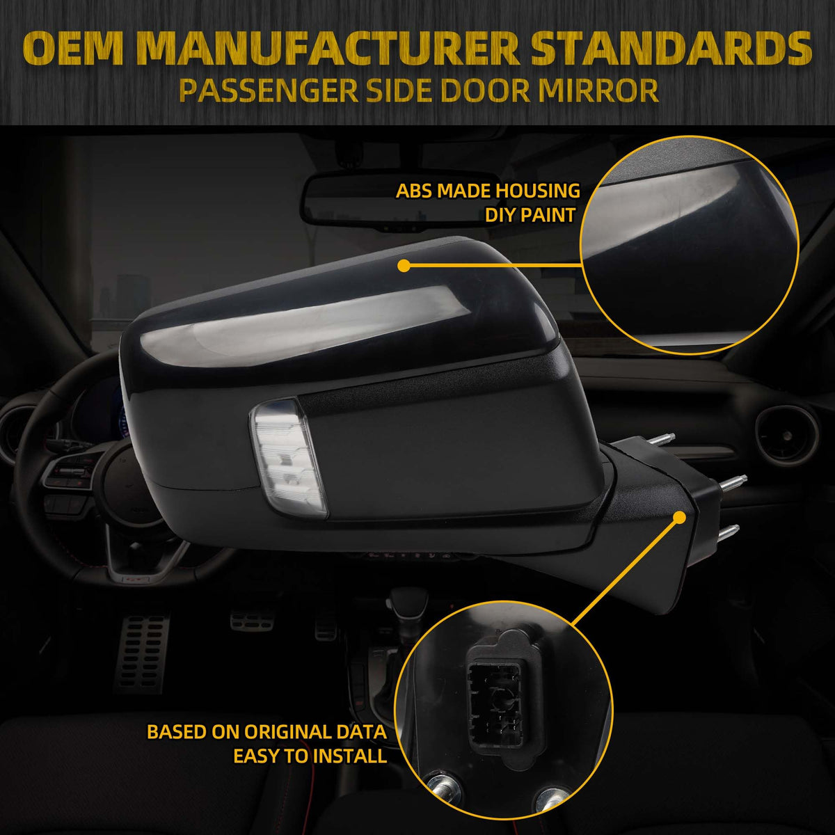 ?Comaptible With?The Passenger Side Mirror Compatible With 2019 2020 2021 2022 2023 2024 Chevy / Chevrolet Silverado 1500?Superior Material ?Black Texture Cover. The Right Door Mirror Assembly Is Consist Of Superior ABS Plastic Cover And High-Temperature Resistant Glass; Waterproof And Anti-fog, Enduring Structure, Good Hardness And Toughness, Long Service Life, Meets OEM Requirements?Part Number?The Part Number Of Left Rear view Mirror Is GM1321586, 84823222; Please Confirm Your Vehicle Model And Part Number Before Purchase ?Feature?The Right Rear View Mirror Is Equipped With Power Heated, Manual Folding, LED Turn Signal, Blind Spot And Temperature Sensor?Note?9 Pins, Plug and Play, No Needs For Other Accessories, Easy Installation With a Few minutes; Save Time and Money