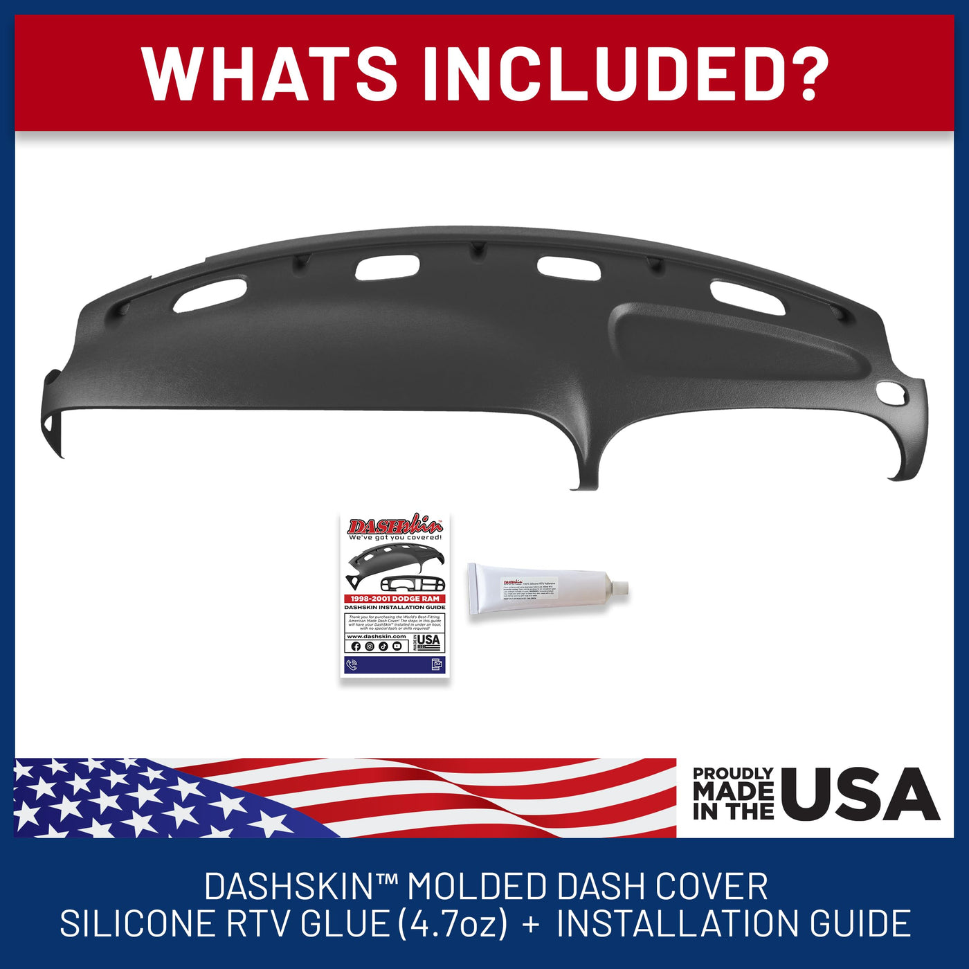 Dashskin Molded Dash Cover Cap Compatible With 1998 1999 2000 2001 Dodge Ram 1500 (98-02 Ram 2500 & 3500) In Universal Black - M