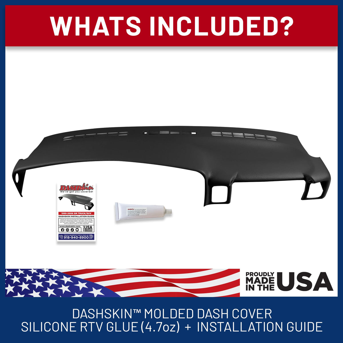 1999-06 GM pickup trucks (and 2000-2006 Tahoe/Yukon/Avalanche/Suburban) are notorious for having dashboards that love to crack, and the paint often peels leaving large black spots. Don't spend a fortune replacing your dash! Revive your rig with a premium quality molded dash overlay that your passengers will never notice is there! This cover is molded to the exact shape of your vehicle's dashboard, and even requires removal of the passenger side grab handle (instructions are included, this process takes 1-2 minutes!) so the grab handle can be re-installed over the edges of the cover for the slickest and stealthiest possible finished product. The cover requires no special tools to install, and mounts using silicone adhesive (included). The workmanship of the cover is warranted for life against cracking, warping, etc. Dash Skins even work great with large pieces of dash missing, as long as there is enough dashboard left on all edges (perimeter) to serve as a stable and level foundation for the cover. If you have cracks you will be covering, we advise cleaning your original dashboard well with rubbing alcohol, and bracing any cracks using 100% silicone RTV adhesive to prevent further cracking or rattling.