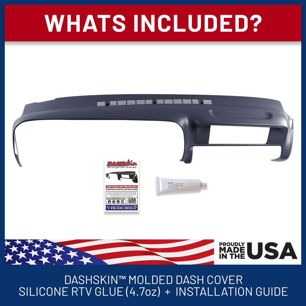 Fix your 97-00 GM truck or SUV dashboard with a molded ABS dash cover from DashSkin! This cover is molded to the exact shape of your truck's dashboard, and mounts right over the top to cover cracks and holes. The cover requires no special tools to install, and mounts using silicone adhesive (included). The workmanship of the cover is warranted for life against cracking, warping, etc. Dash Skins even work great with large pieces of dash missing, as long as there is enough dashboard left on all edges (perimeter) to serve as a stable and level foundation for the cover. If you have cracks you will be covering, we advise cleaning your original dashboard well with industrial degreaser, and bracing any cracks using extra 100% silicone RTV adhesive to prevent further cracking or rattling.