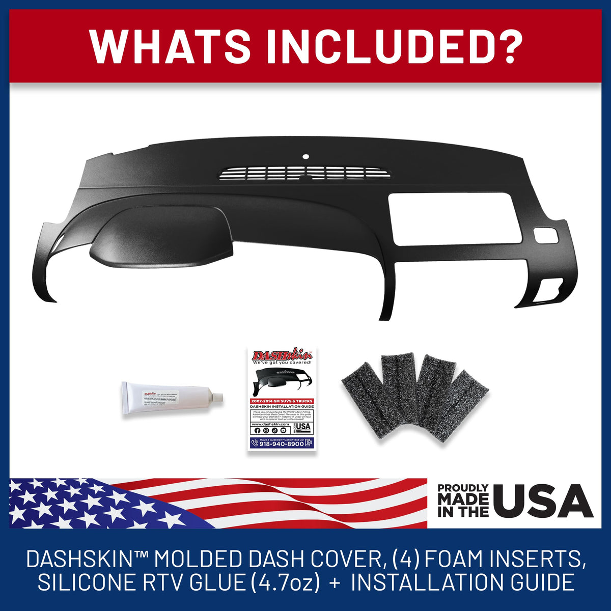 Fix your 07-13 GM Truck dashboard with a molded plastic dash cover from DashSkin! This cover is molded to the exact shape of your vehicle's dashboard, and mounts right over the top of your dash to cover cracks and holes. The cover requires no special tools to install, and mounts using silicone adhesive (included). This DashSkin covers the whole top of the dash including the defrost panel. The workmanship of the cover is warranted for life against cracking, warping, etc. Dash Skins even work great with large pieces of dash missing, as long as there is enough dashboard left on all edges (perimeter) to serve as a stable and level foundation for the cover. If you have cracks you will be covering, we advise cleaning your original dashboard well with degreaser, and bracing any cracks using some of the included silicone adhesive. If you have lots of cracks or large holes, you can add a second tube of adhesive to use for reinforcement/strengthening by clicking add to cart it in the related products below (also found in the EXTRAS section of our site). This dash cover fits 2007-2013 DOES NOT FIT Silverado LTZ or Sierra SLT/Denali! THIS DASH COVER DOES NOT FIT ANY OTHER TRIM PACKAGE FOR SILVERADO OR SIERRA! PLEASE SEARCH AMAZON FOR ASIN B00HS4S396 TO FIND OUR SILVERADO/SIERRA DASH COVER FOR SINGLE GLOVEBOX TRUCKS.
