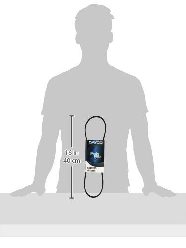 Q: What are the dimensions of the Dayco 5040338 Belt package?A: The package dimensions for the Dayco 5040338 Belt are 15.0 inches in length, 3.4 inches in width, and 0.2 inches in height.
