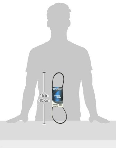 Q: What are the dimensions and weight of the Dayco 5040353 Belt?A: The Dayco 5040353 Belt has a length of 15.3 inches, a width of 4.0 inches, and weighs approximately 0.01 pounds.