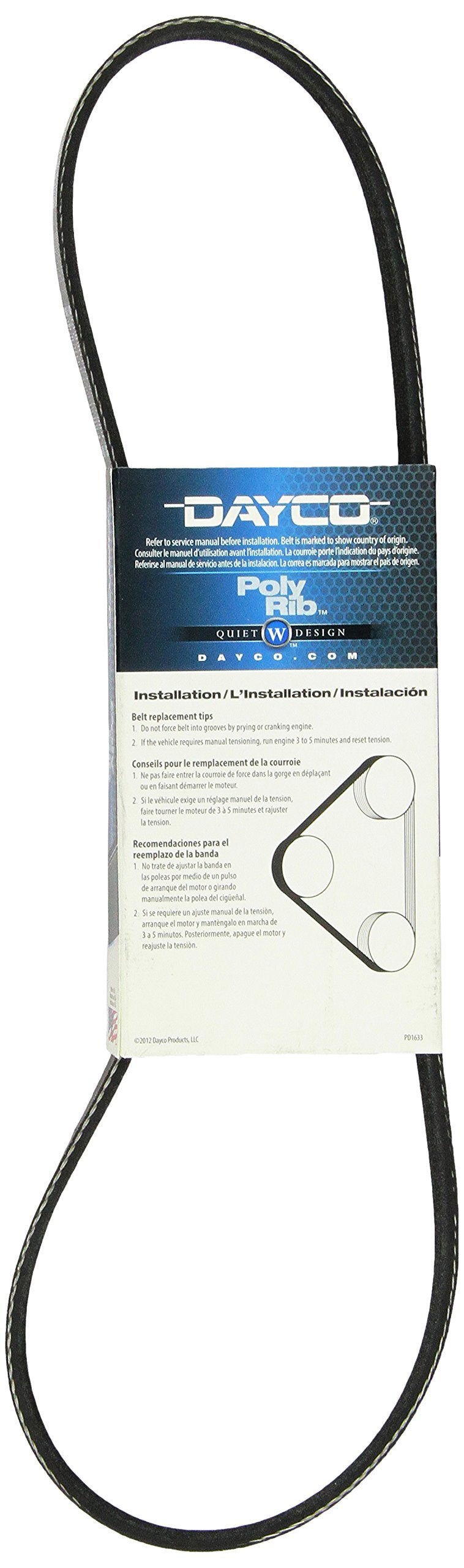 Q: How should I care for the Dayco 5040353 Belt to ensure its longevity?A: To care for the Dayco 5040353 Belt, regularly inspect it for signs of wear and ensure it is properly tensioned. Avoid exposure to extreme temperatures and chemicals that could degrade the material.