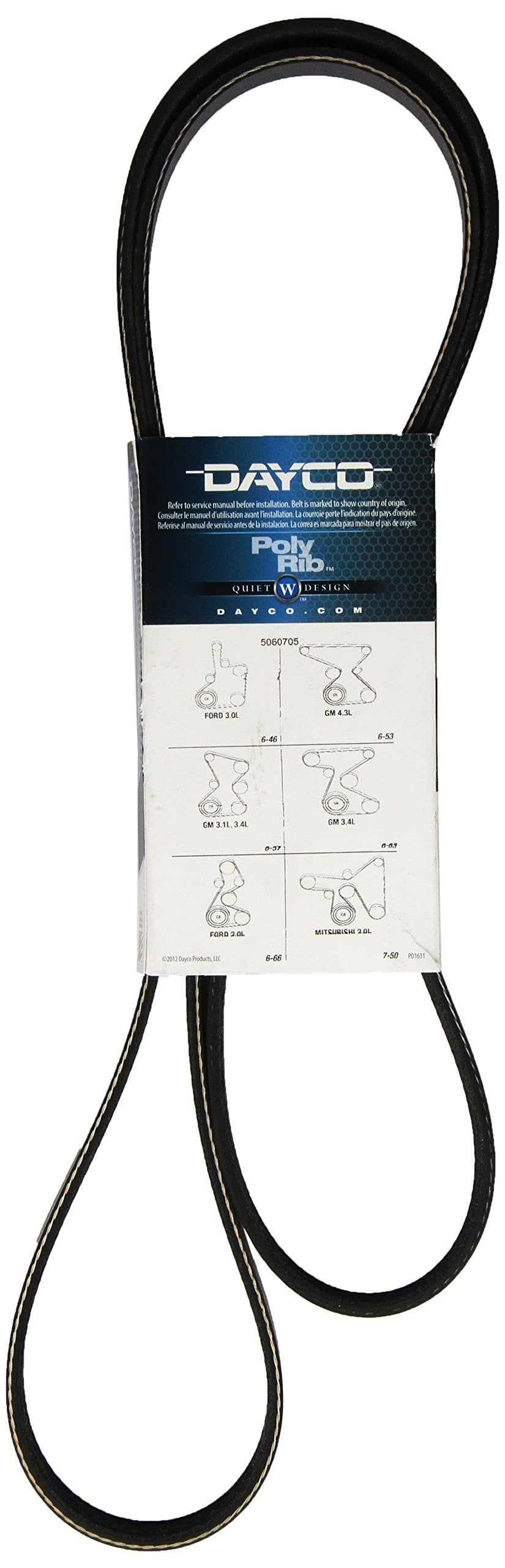 Q: How long can I expect the Dayco 5060705 Serpentine Belt to last?A: The lifespan of the Dayco 5060705 Serpentine Belt can vary based on driving conditions and vehicle usage. However, with its durable design, it can last significantly longer than conventional belts, especially under high load.