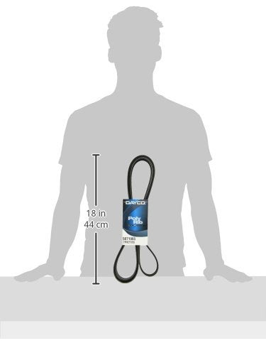 Q: What are the dimensions of the Dayco 5071065 Serpentine Belt?A: The Dayco 5071065 Serpentine Belt has a package dimension of 17.44L x 5.20W x 1.14H inches and is designed to fit specific configurations in vehicles, ensuring optimal performance.