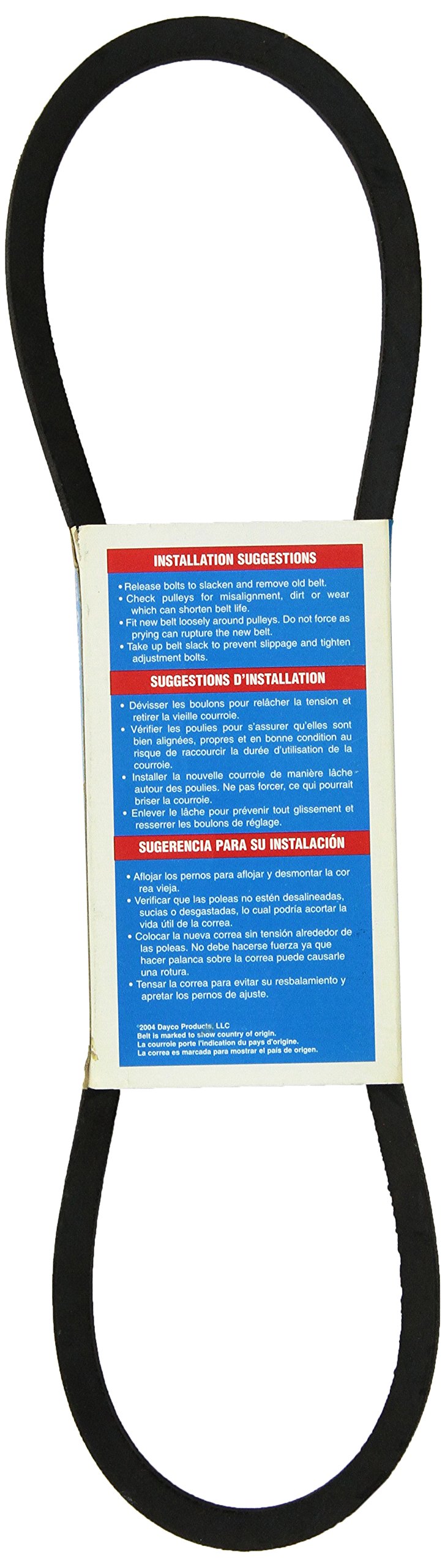 Q: How should I care for my Dayco Super Blue Ribbon V-Belt to ensure longevity?A: To prolong the life of your Dayco Super Blue Ribbon V-Belt, regularly inspect it for wear and proper tension, avoid overloading, and keep it clean from debris and contaminants.
