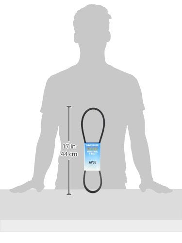 Q: What is the outside length of the Dayco AP36 Super Blue Ribbon V-Belt?A: The Dayco AP36 Super Blue Ribbon V-Belt has an outside length of 38.3 inches, making it suitable for various applications requiring a reliable V-belt.