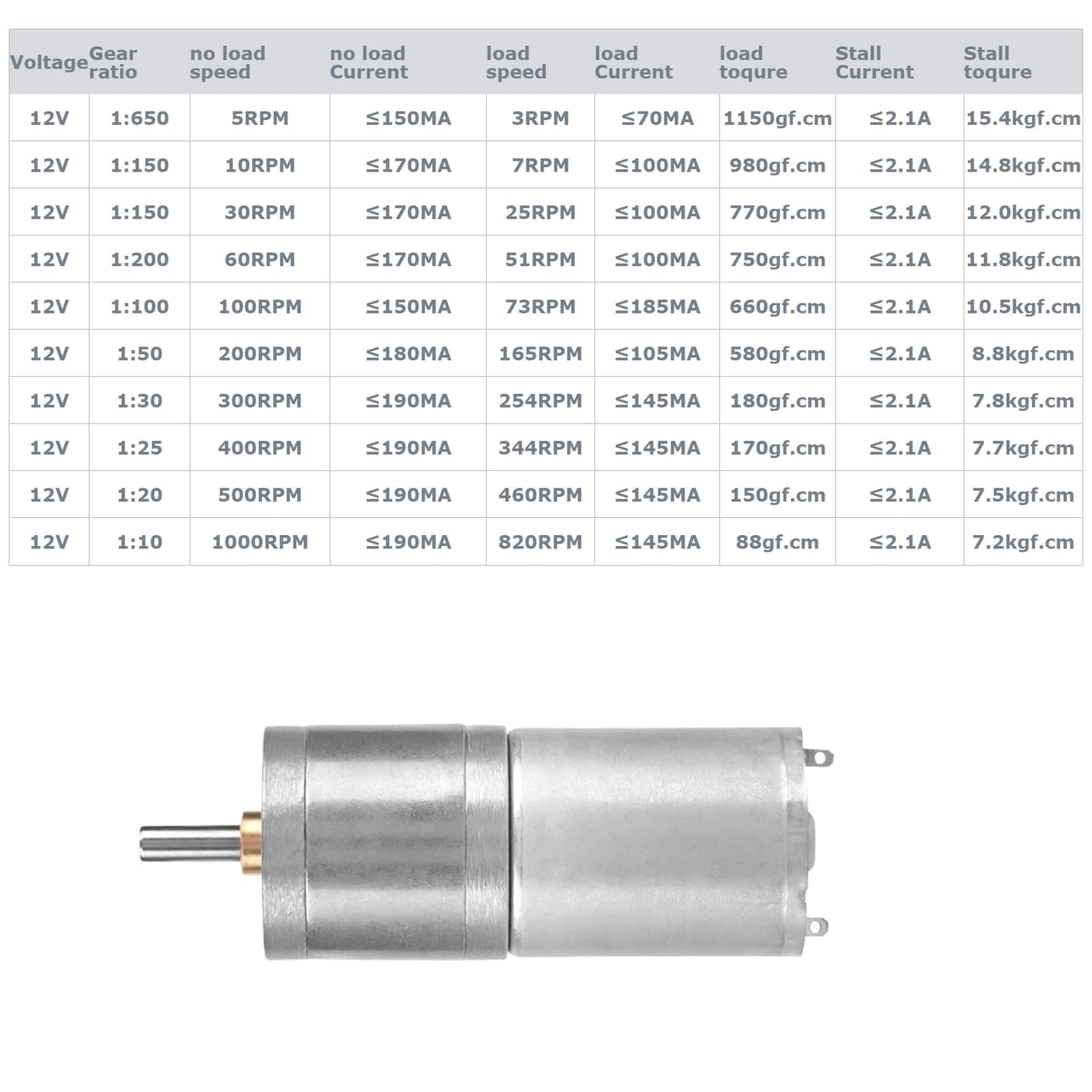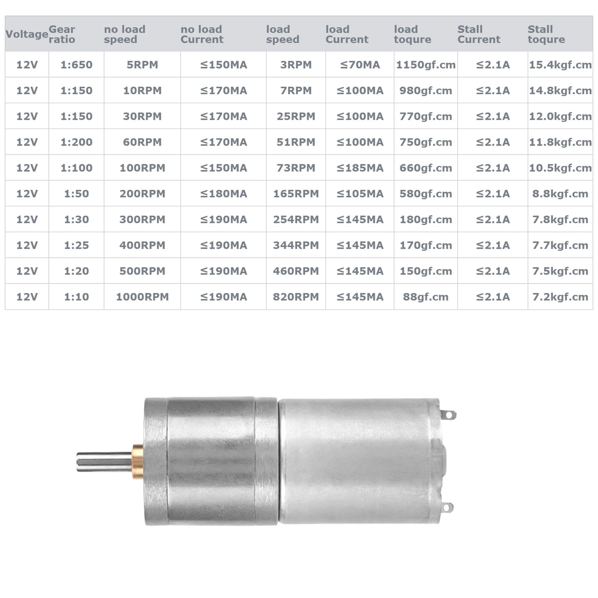DC Gear Motor DC 12V Reduction Electric Motor 25GA-370 Micro Motor Speed Reduction Geared Motor for Electronic Lock Outer Diamet