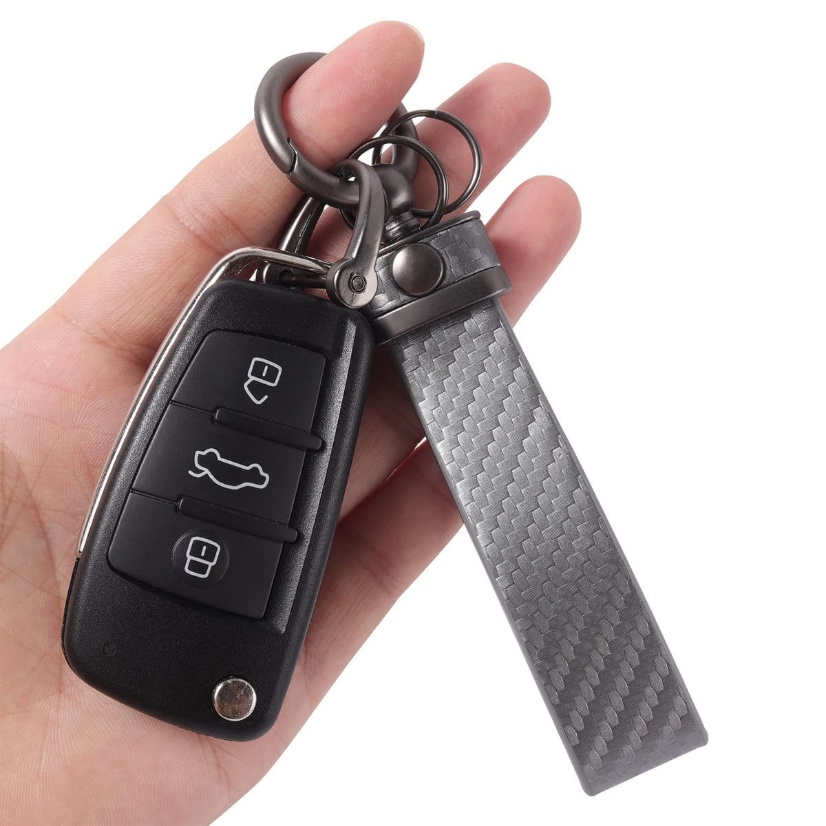 Dekewei Carbon Fiber Car Keychain Microfiber Leather Key Chain,Universal Car Key Holder For Men And Women,Car Key Fob With Anti-