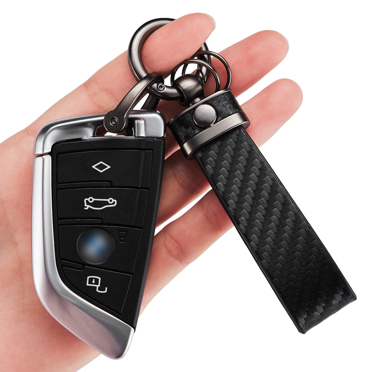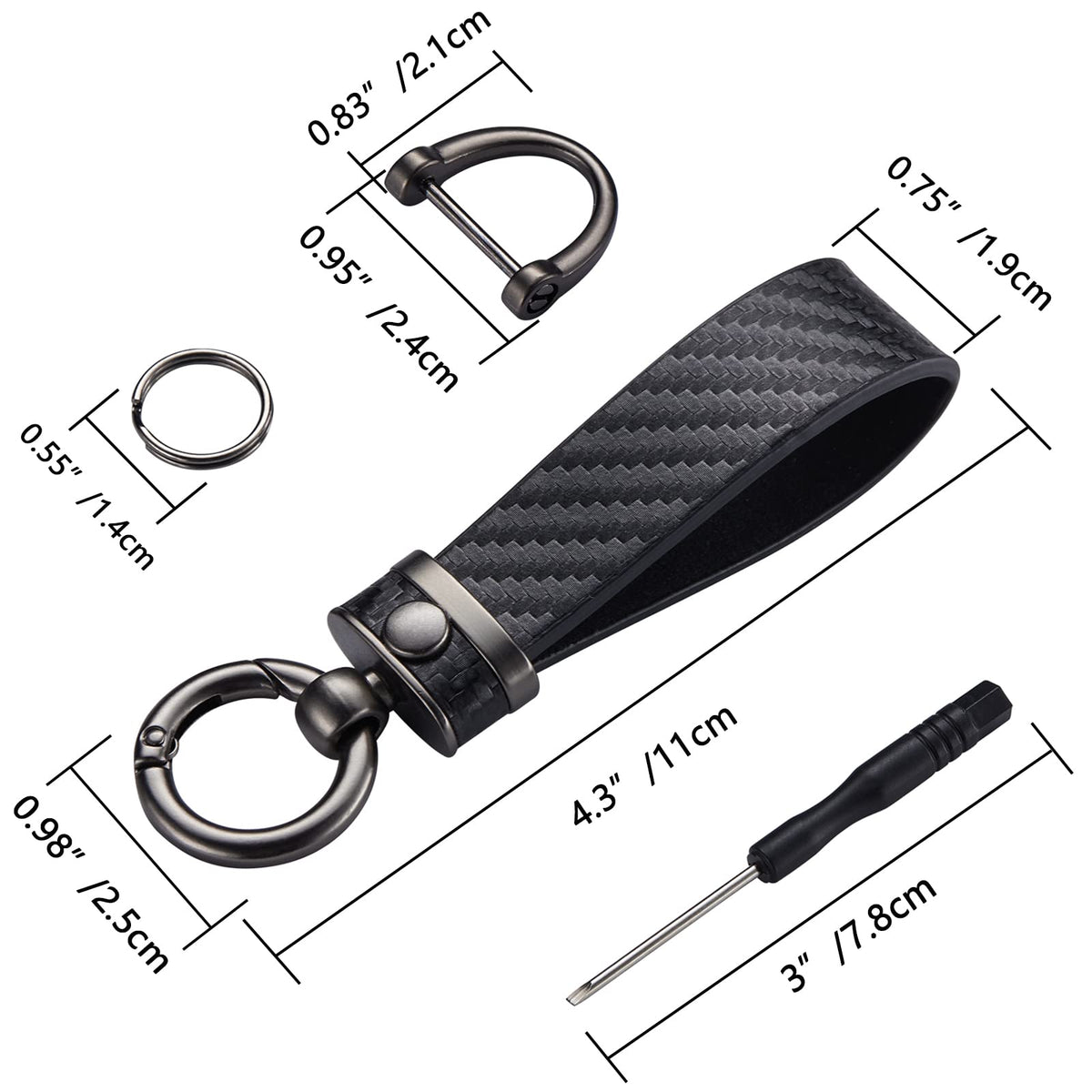 Dekewei Carbon Fiber Style Microfiber Leather Key Chain Adekewei Keychains For Fobs Is Made Of Microfiber Leather And Zinc Alloy Athe Metal Keychain Clip Is Designed With Quick Release Spring Clip, It Is Easy To Press And Spring Back Athe D-Ring Buckle Is Designed With Screws For More Security And Loss Prevention, So You Dont Have To Worry About Losing Your Car Keys Ayou Can Design Your Own Unique Keychain With Removable D-Rings, Metal Keychain Clips And Key Rings Enjoy The Diy Fun Athis Is A Perfect Gift For A Friend, Family Member Or Colleague For Christmas, Birthday Or Any Other Occasion Material: Zinc Alloy + Microfiber Leather Package Includes: 1 X Microfiber Leather Keychain 1 X D-Ring 2 X Keyrings 1 X Screwdriver