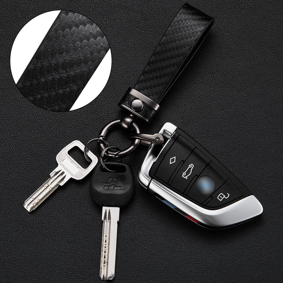 Dekewei Carbon Fiber Style Car Keychain Microfiber Leather Key Chain, Universal Key Chains For Key Fobs For Men And Women, 360 D