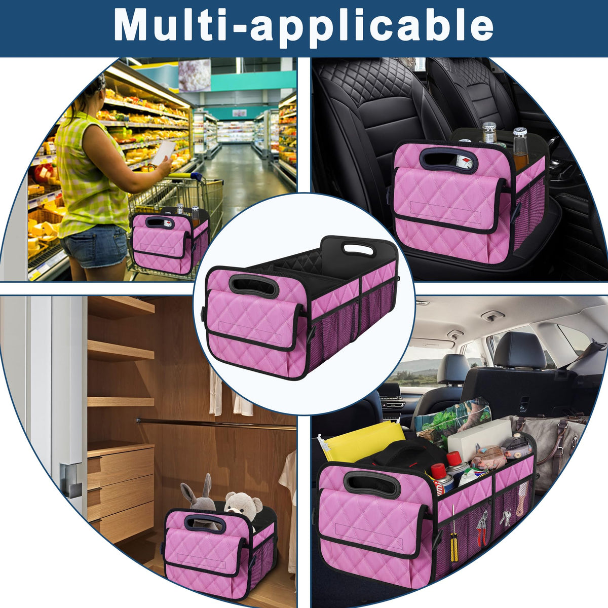 Deosk Car Trunk Organizer For Suv - 50L Waterproof Polyester Storage With 6 Big Pockets, Accessories For Women/Men (Medium, Pink