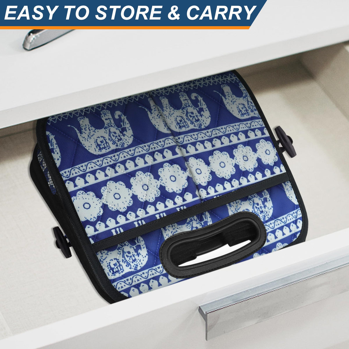 Deosk Collapsible Car Organizer with 6 Pockets, 50L Multi-Compartment Trunk Organizer, Accessories for Women/Men - Blue Elephant