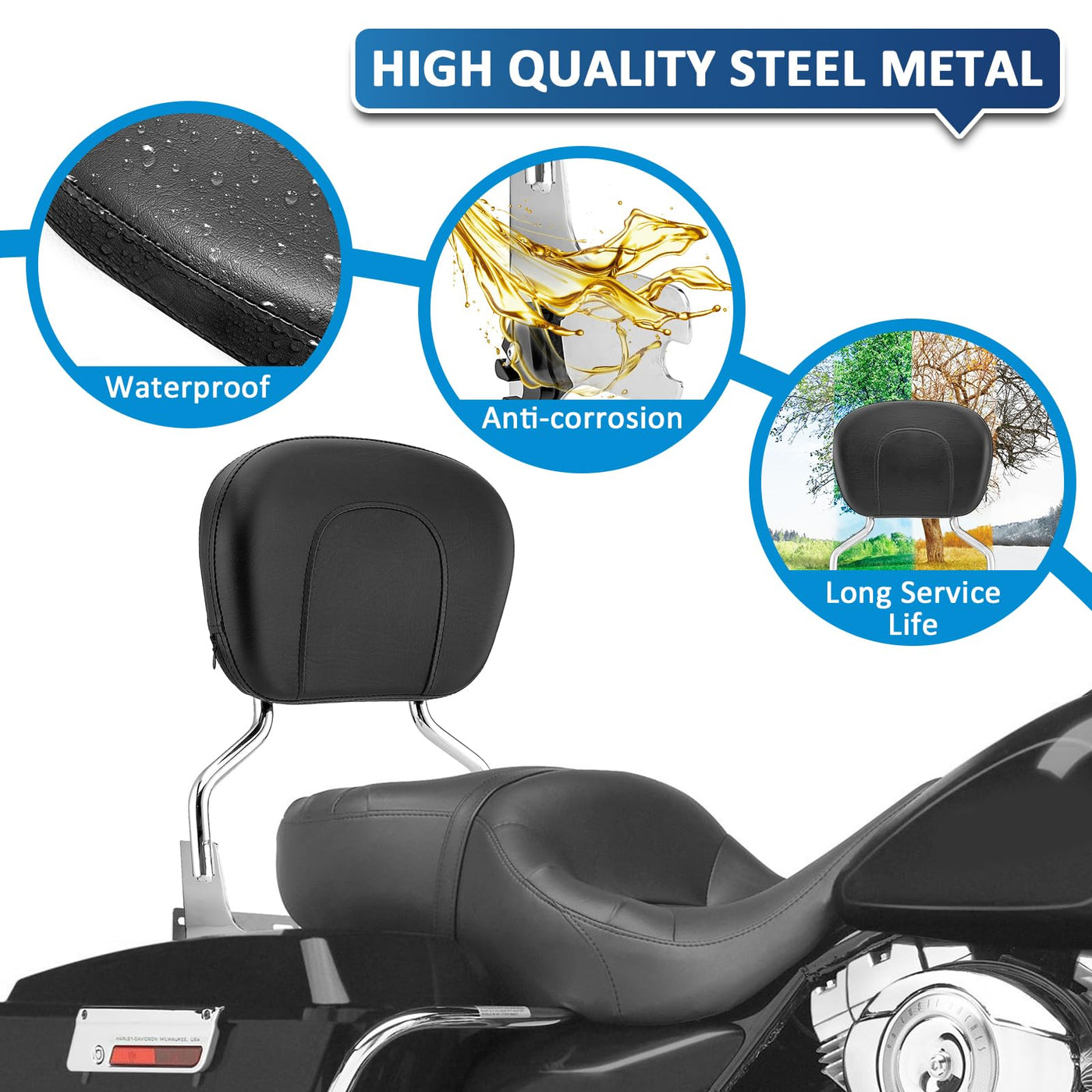 Detachable Sissy Bar Passenger Backrest With 4-Point Docking Hardware Kit Compatible With Harley Touring Electra Glide Road King Street Glide 1997-2008