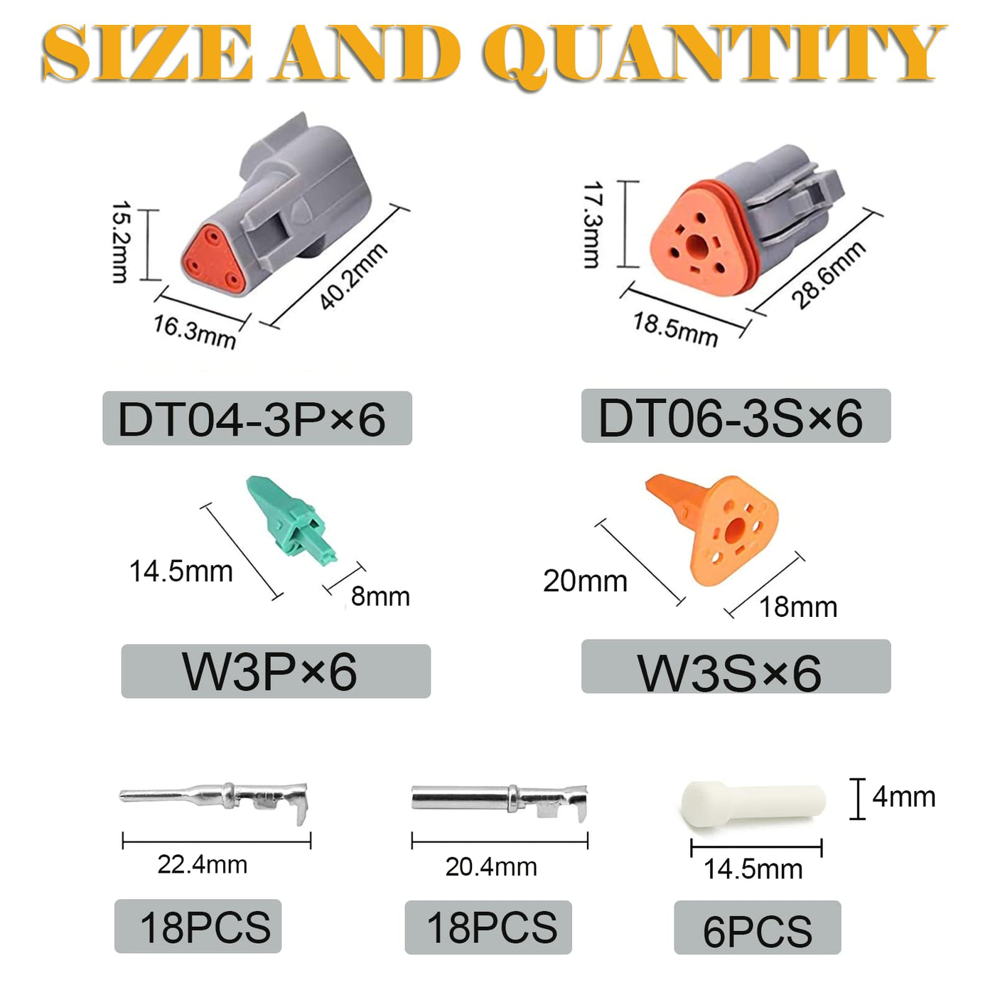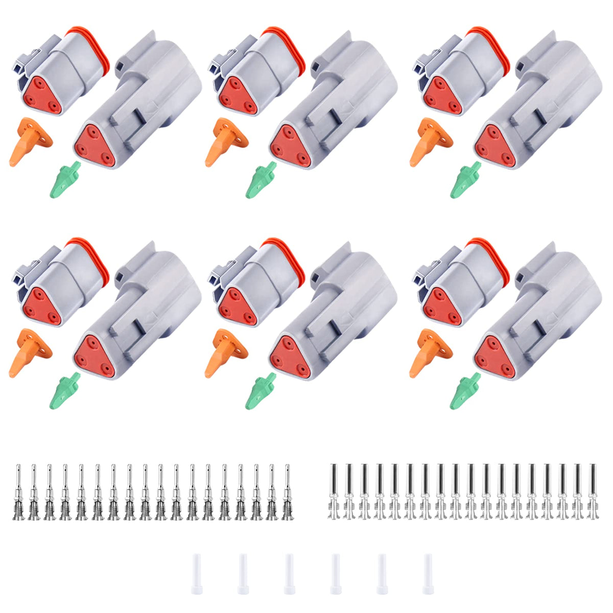 Deutsch Dt Grey 3 Pin Connectors 6 Sets, Waterproof Electrical Wire Connector With Stamped Contacts And Seal Plug For Truck, Off-Road Vehicles, Construction, Agriculture, Marine, Motorcycle Wiring