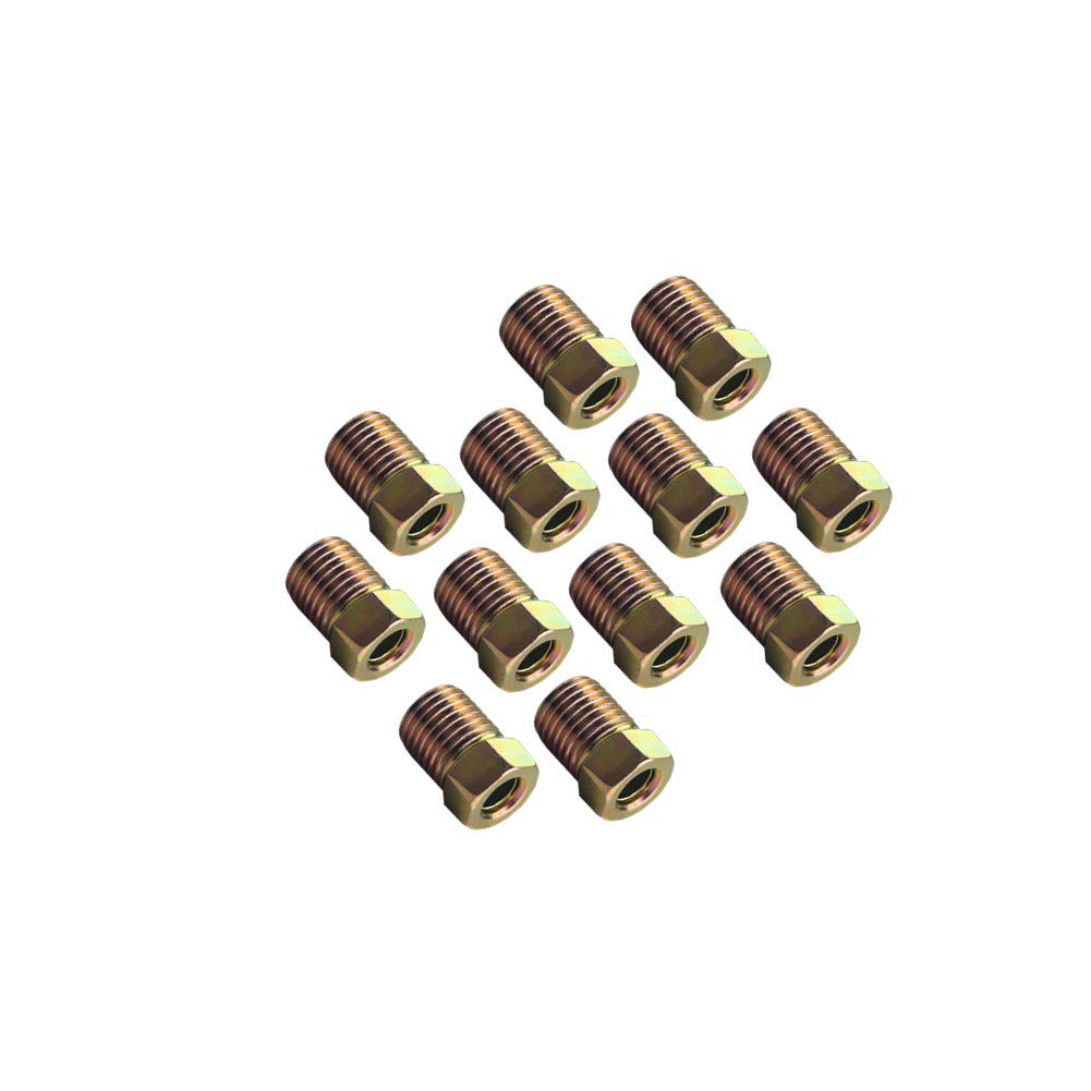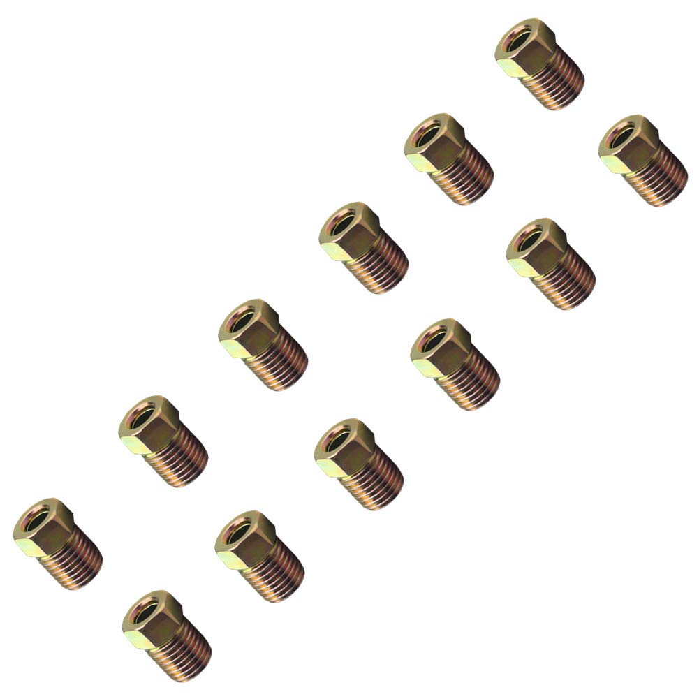 Sae 3/16 Tube Size X 3/8-24 Thread Size- Oem Brake Line Fittings For 3/16' Or 4.50 Mm Tubing, Thread 3/8-24, Hex Head 3/8', Oal .560, Length Of Thread .350, Finish Gold Zinc. The Most Common Brake Line Fitting Used. Gm9432075. Steel Brake Line Tube Nuts For 3/16' Steel Brake Line Tubing Inverted Flare Standard 3/8'-24 Thread Equivalent To 105B, 121003, 105X3, 90002, 785-460, Br105