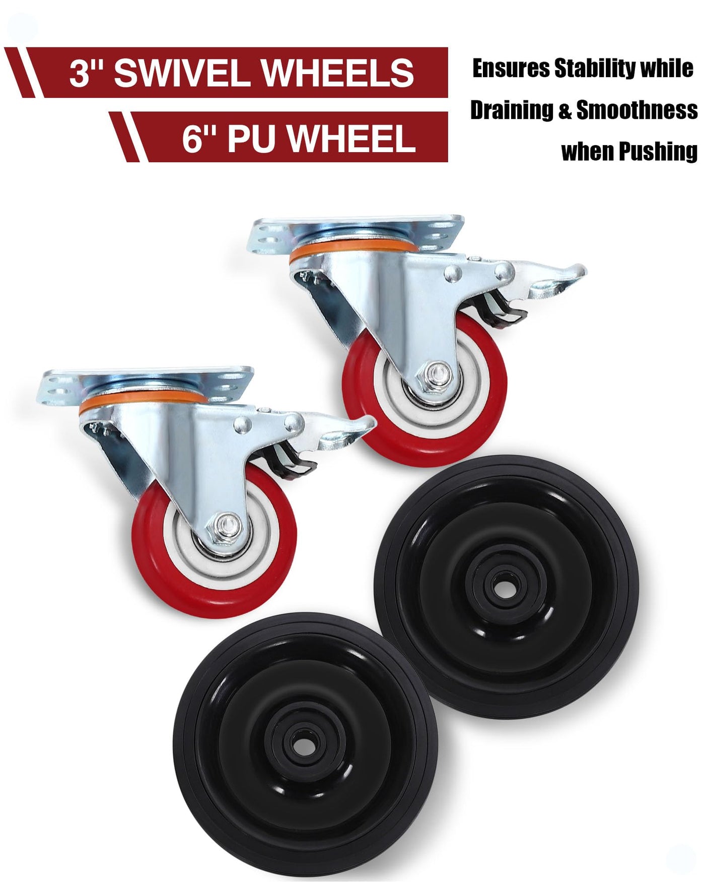 DEXSO 15 Gallon Oil Drain Pan with Hand Pump & 8 Ft Hose, Low Profile & T Folding Handle Oil Drain Cart for Truck Cars SUVs