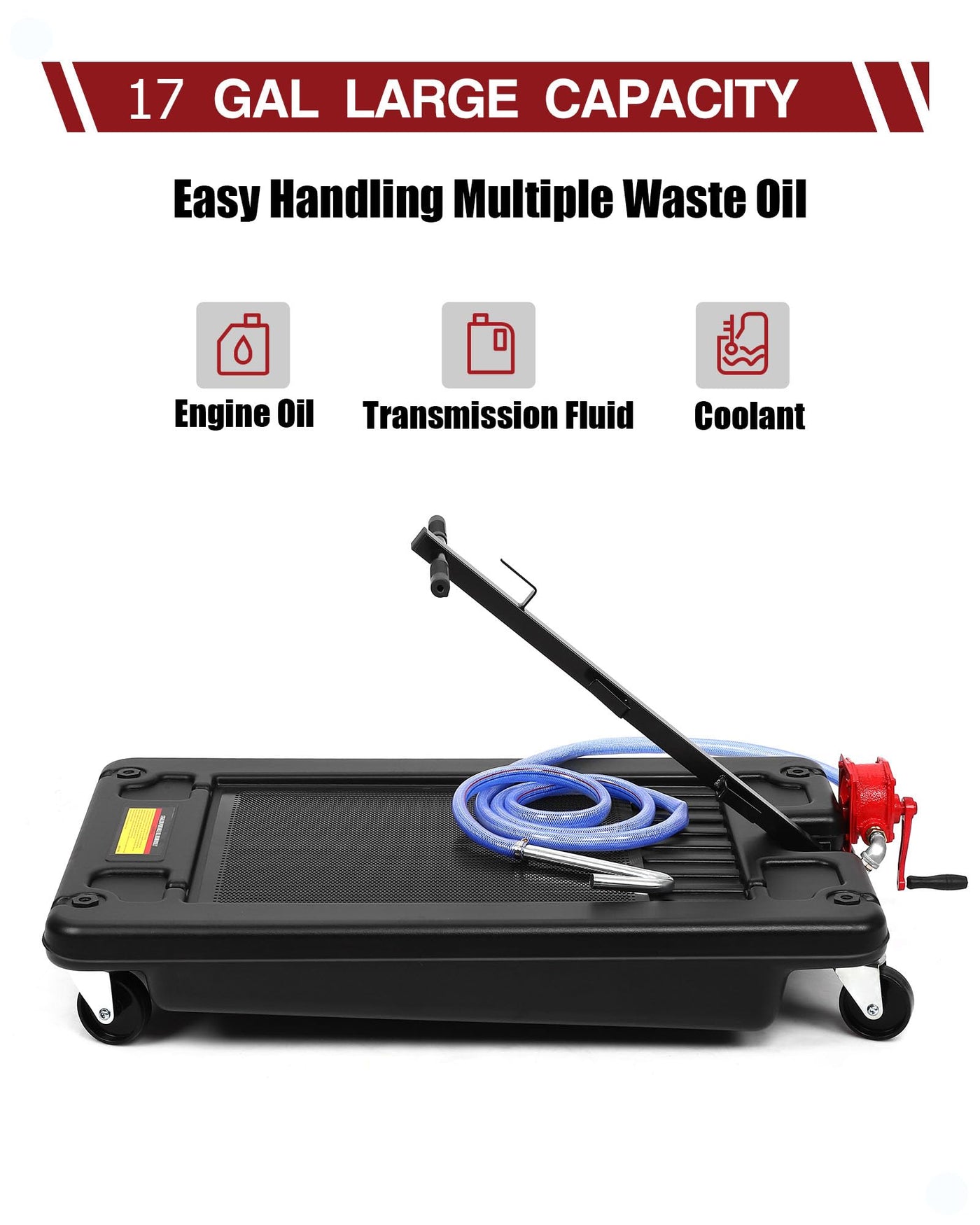 DEXSO 17 Gallon Oil Drain Pan with Pump & 8 Ft Hose, Low Profile & T Folding Handle Rolling Oil Drain Cart for Truck Cars SUVs