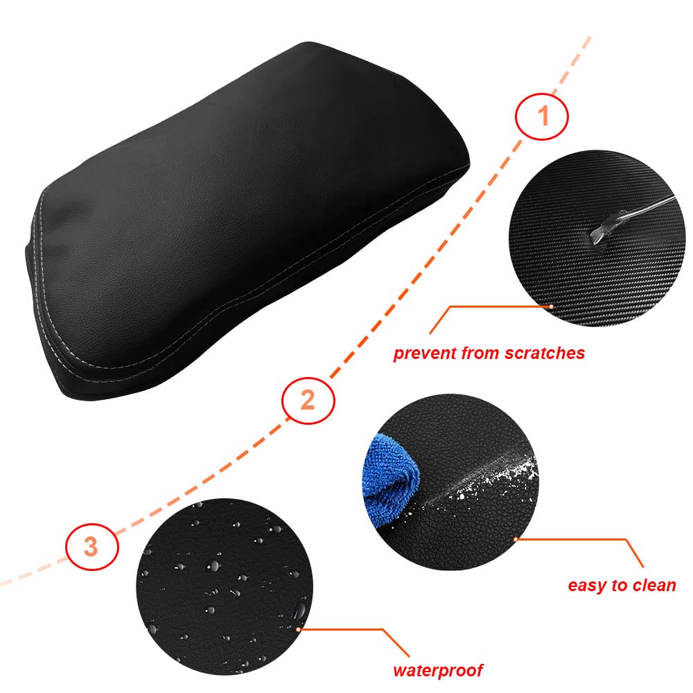 MATERIAL: The DEYTOP armrest cover is crafted from high-quality anti-scratch PU leather, providing a soft and comfortable surface for your arm while driving. This material not only enhances comfort but also elevates the aesthetic appeal of your car's interior.