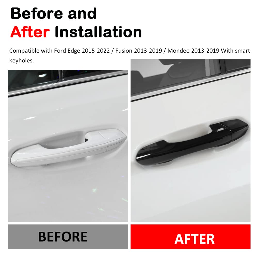 FITMENT: Compatible with Ford Edge 2015 2016 2017 2018 2019 2020 2021 2022 Accessories Compatible with Ford Fusion 2013 2014 2015 2016 2017 2018 2019 Accessories Compatible with Ford Mondeo 2013 2014 2015 2016 2017 2018 2019 Accessories EASY TO INSTALL: ?It would be good to warm the tape with hair dryer before installation for better adhesion? ? Clean the exterior door handle surface, ? Check the area or location on the vehicle where this product needs to be installed and , ? Peel off the double-sided tape on the back, ? Then put the door handle cover right on the position and press it. PLEASE NOTE: (1) It is a door handle decoration cover trim, not a replacement, please make sure before purchase. (2)If there are any problem with the product, please contact us, we will do our best to solve the problem.