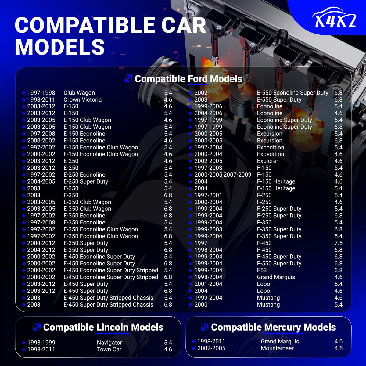 Manufacturer Part Number: Dg508+Sp479 Replacement Part Number: Dg508, Fd503, Fd503T, Dg540, 3W7Z12029Aa, 3W7Z12029Aae, Skic001, Gn10164, 1L2U12029Aa, 1L2Z12029Aa, 1L2U12A366A, 8W7E12A366Aa, F7Tz12029Ab, Cop9, F7Tz12029Cc, F7Tz12A366Ab, 3W7E12A366Aa, 3Wtz12029Aa, F7Tu12A366Ab, F7Tu12A366Cb, F7Tz12029Ba, F7Tz12029Ca, F7Tz12A366Ba,Dg457?, Dg467, Dg473, Dg481, Fd493, Dg491 Compatible With The Following Vehicles: For Ford Club Wagon 1997-1998 5.4 For Ford Crown Victoria 1998-2011 4.6 For Ford E-150 2003-2012 4.6 For Ford E-150 2003-2012 5.4 For Ford E-150 Club Wagon 2003-2005 4.6 For Ford E-150 Club Wagon 2003-2005 5.4 For Ford E-150 Econoline 1997-2008 5.4 For Ford E-150 Econoline 2000-2002 4.6 For Ford E-150 Econoline Club Wagon 1997-2002 5.4 For Ford E-150 Econoline Club Wagon 2000-2002 4.6 For Ford E-250 2003-2012 4.6 For Ford E-250 2003-2012 5.4 For Ford E-250 Econoline 1997-2002 5.4 For Ford E-250 Super Duty 2004-2005 5.4 For Ford E-350 2003 5.4 For Ford E-350 2003 6.8 For Ford E-350 Club Wagon 2003-2005 5.4 For Ford E-350 Club Wagon 2003-2005 6.8 For Ford E-350 Econoline 1997-2002 6.8 For Ford E-350 Econoline 1997-2008 5.4 For Ford E-350 Econoline Club Wagon 1997-2002 5.4 For Ford E-350 Econoline Club Wagon 1997-2002 6.8 For Ford E-350 Super Duty 2004-2012 5.4 For Ford E-350 Super Duty 2004-2012 6.8 For Ford E-450 Econoline Super Duty 2000-2002 5.4 For Ford E-450 Econoline Super Duty 2000-2002 6.8 For Ford E-450 Econoline Super Duty Stripped 2000-2002 5.4 For Ford E-450 Econoline Super Duty Stripped 2000-2002 6.8 For Ford E-450 Super Duty 2003-2012 5.4 For Ford E-450 Super Duty 2003-2012 6.8 For Ford E-450 Super Duty Stripped Chassis 2003 5.4 For Ford E-450 Super Duty Stripped Chassis 2003 6.8 For Ford E-550 Econoline Super Duty 2002 6.8 For Ford E-550 Super Duty 2003 6.8 For Ford Econoline 1999-2006 5.4 For Ford Econoline 2004-2006 4.6 For Ford Econoline Super Duty 1997-1999 5.4 For Ford Econoline Super Duty 1997-1999 6.8 For Ford Excursion 2000-2005 5.4 For Ford Excursion 2000-2005 6.8 For Ford Expedition 1997-2004 5.4 For Ford Expedition 2000-2004 4.6 For Ford Explorer 2002-2005 4.6 For Ford F-150 1997-2003 5.4 For Ford F-150 2000-2005,2007-2009 4.6 For Ford F-150 Heritage 2004 4.6 For Ford F-150 Heritage 2004 5.4 For Ford F-250 1997-2001 5.4 For Ford F-250 2000-2004 4.6 For Ford F-250 Super Duty 1999-2004 5.4 For Ford F-250 Super Duty 1999-2004 6.8 For Ford F-350 1999-2004 5.4 For Ford F-350 Super Duty 1999-2003 6.8 For Ford F-350 Super Duty 1999-2004 5.4 For Ford F-450 1997 7.5 For Ford F-450 1998-2004 6.8 For Ford F-450 Super Duty 1999-2004 6.8 For Ford F-550 Super Duty 1999-2004 6.8 For Ford F53 1999-2004 6.8 For Ford Grand Marquis 1998-2004 4.6 For Ford Lobo 2001-2004 5.4 For Ford Lobo 2004 4.6 For Ford Mustang 1999-2004 4.6 For Ford Mustang 2000 5.4 For Lincoln Navigator 1998-1999 5.4 For Lincoln Town Car 1998-2011 4.6 For Mercury Grand Marquis 1998-2011 4.6 For Mercury Mountaineer 2002-2005 4.6