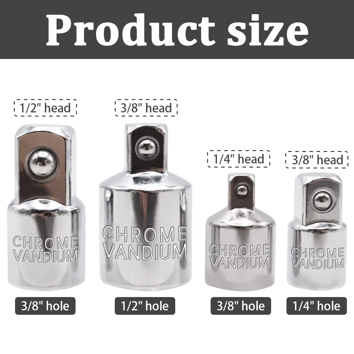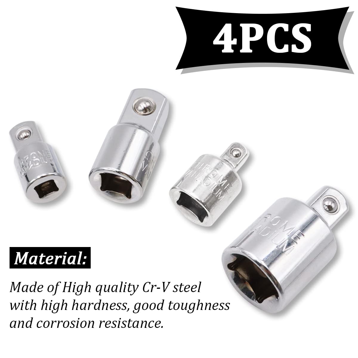 Dianrui 4 Pcs Socket Adapter Set,3/8 To 1/2 Socket Adapter,3/8 To 1/4 Socket Adapter,1/2 To 3/8 Impact Adapter,Square Ratchet Socket Adapter/Reducer Sets For Automotive And Construction