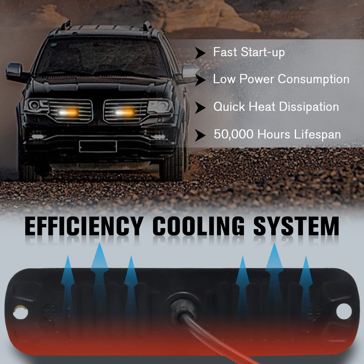 Dibms Led Emergency Strobe Lights, 8X Amber White 6 Led Strobe Warning Emergency Flashing Light Caution Construction Hazard Ligh