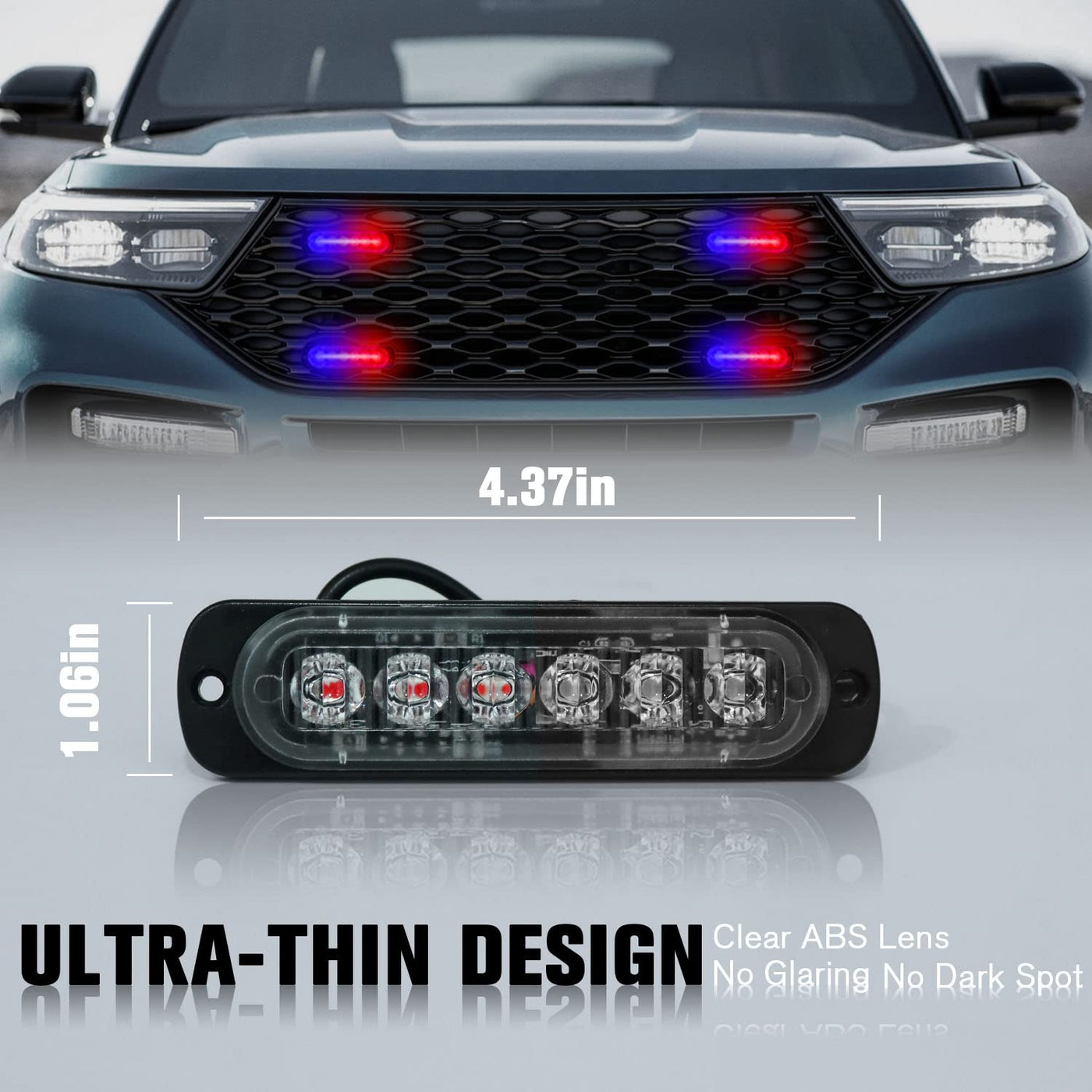 Dibms Led Emergency Strobe Lights, 8X Red Blue 6 Led Strobe Warning Emergency Flashing Light Caution Construction Hazard Light B