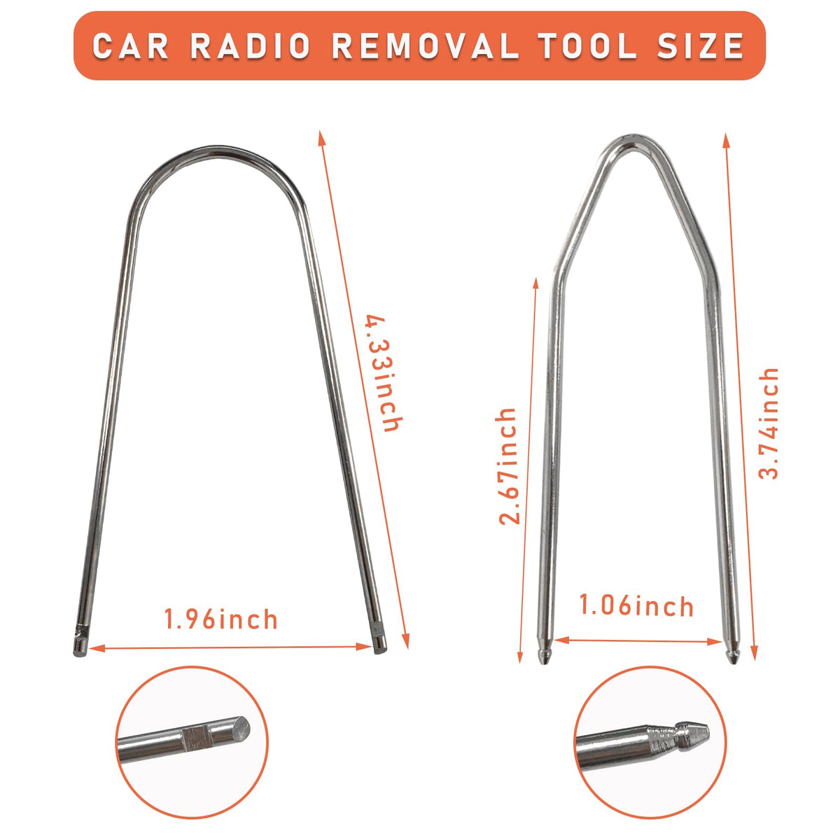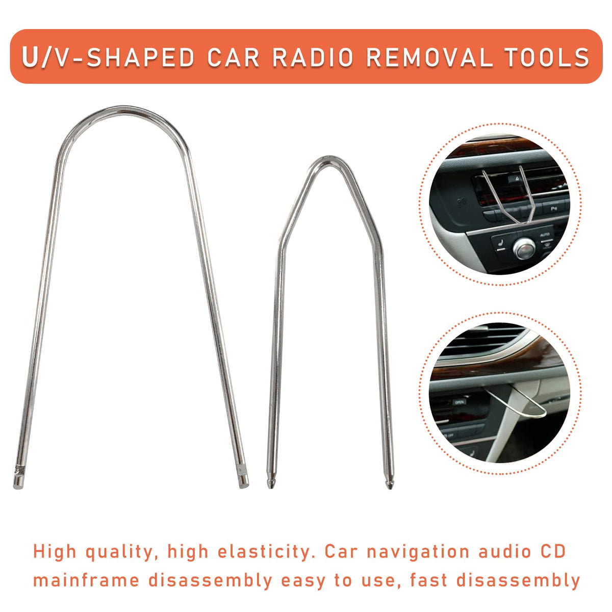 Specification: Material: Stainless Steels Quantity: 2/ 4/ 8PCS Color: Silver Style: U-Shaped/ V-Shaped Size: 4.3 2/ 3.7 1.1 inches Package Includes: 4 U-Shaped Tools, 4 V-Shaped Tools, 2 U-Shaped+2 V-Shaped Tools Weight: 0.12/ 0.09/ 0.21 lb Fit Type: Universal Fit Why should you choose this product? -It prevents scratches and damage to the equipment's surface, preserving its appearance. -Reduces time and effort for disassembly and maintenance tasks. -Great applicability, compatible with most car radios. -A nice gift for family and friends.