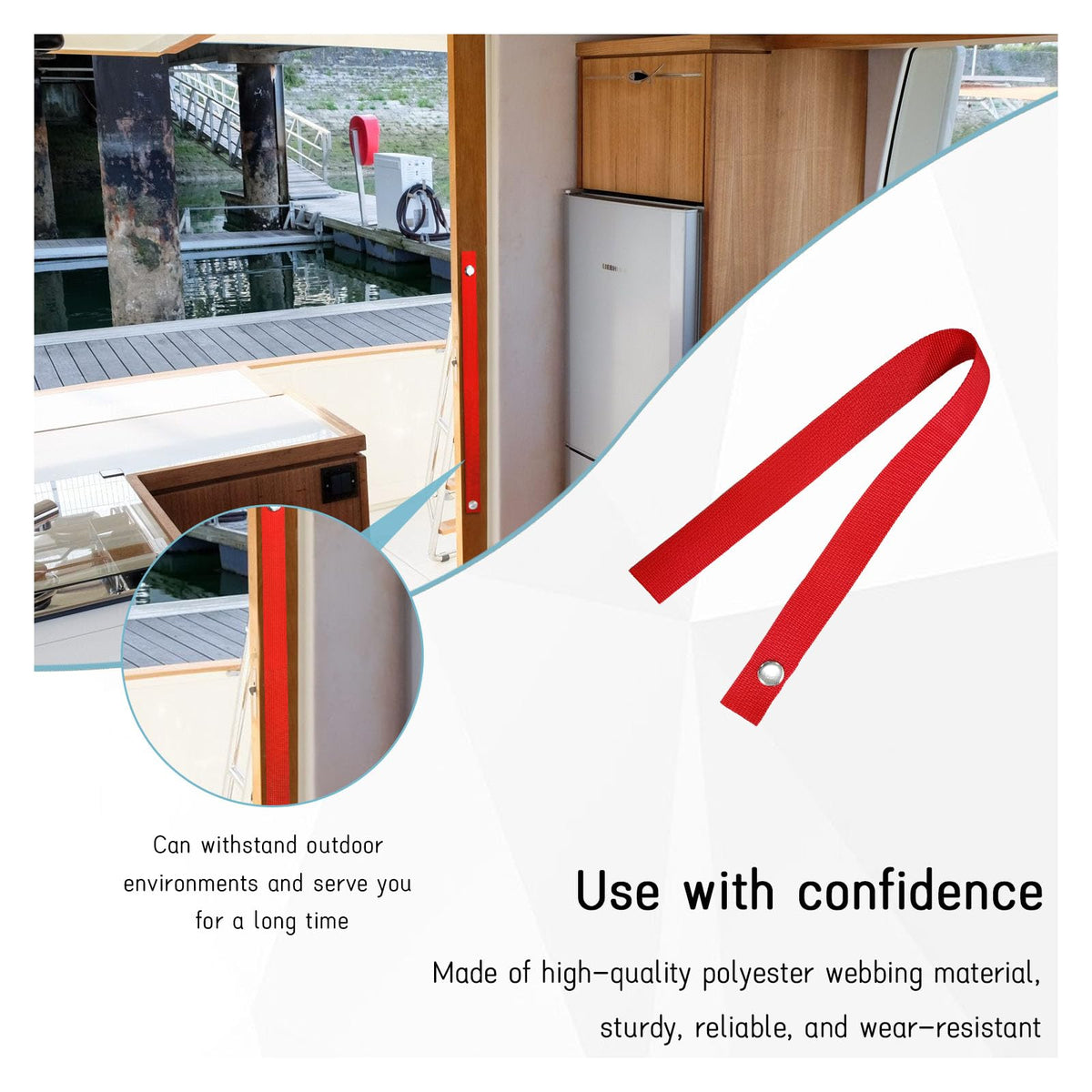 Product Information: Material: Nylon Quantity: 2 PCS Color: Black/ Blue/ White/ Red/ Gray Size: 18 1 inches Weight: 41 g Package: 2 Door Straps, 4 Screw Studs, 4 Button Snaps, 4 Screw Caps, 4 Gaskets Product advantages: -Product is waterproof, easy to clean with water. -Boat ladder strap can be cut according to your needs to achieve the best installation effect. -It also can be used in securing compartments, cabinets, shower curtains, and so on, which is practical and versatile. -RV interior accessories are practical gifts for your friends and family members who have campers, boats, trailers, etc.