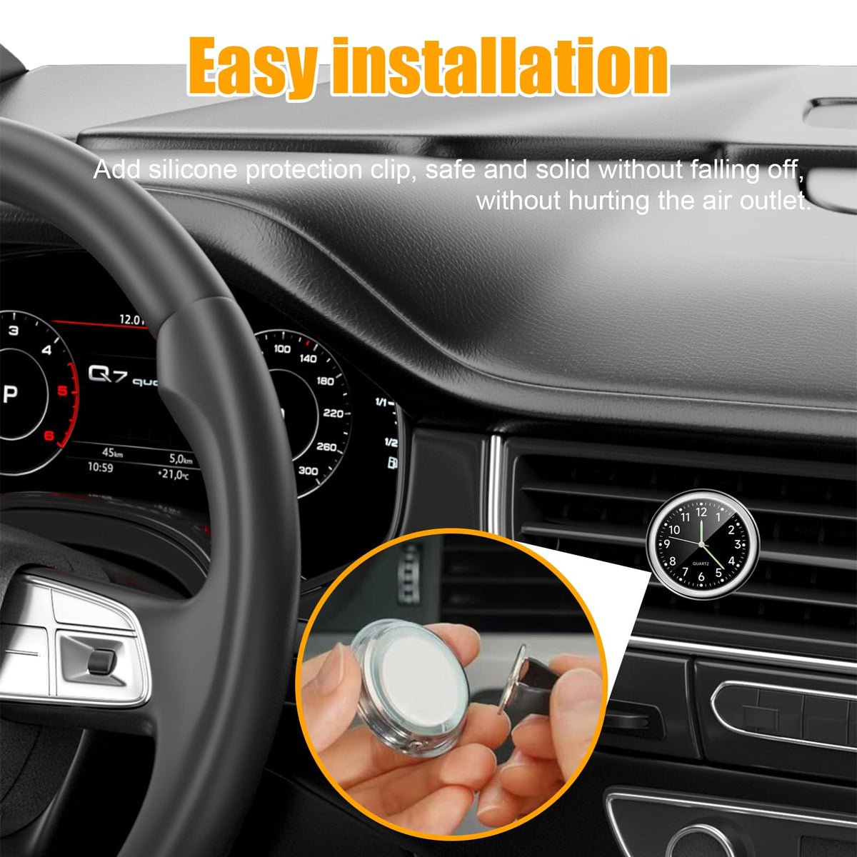 Q: Is the Dickno car clock easy to install?A: Yes, the installation is straightforward. You simply peel off the adhesive tape and stick the clock onto your dashboard, or use the sealing clip to attach it to your car's air vent, ensuring stability during driving.