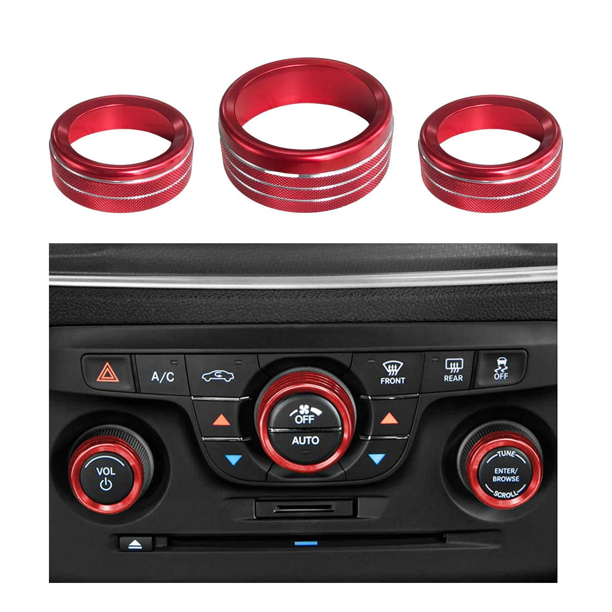 Dickno 3Pcs Air Conditioner Switch Button Knob Cover, Aluminum Alloy A/C Decal Trim Rings Compatible With Challenger Durango 201