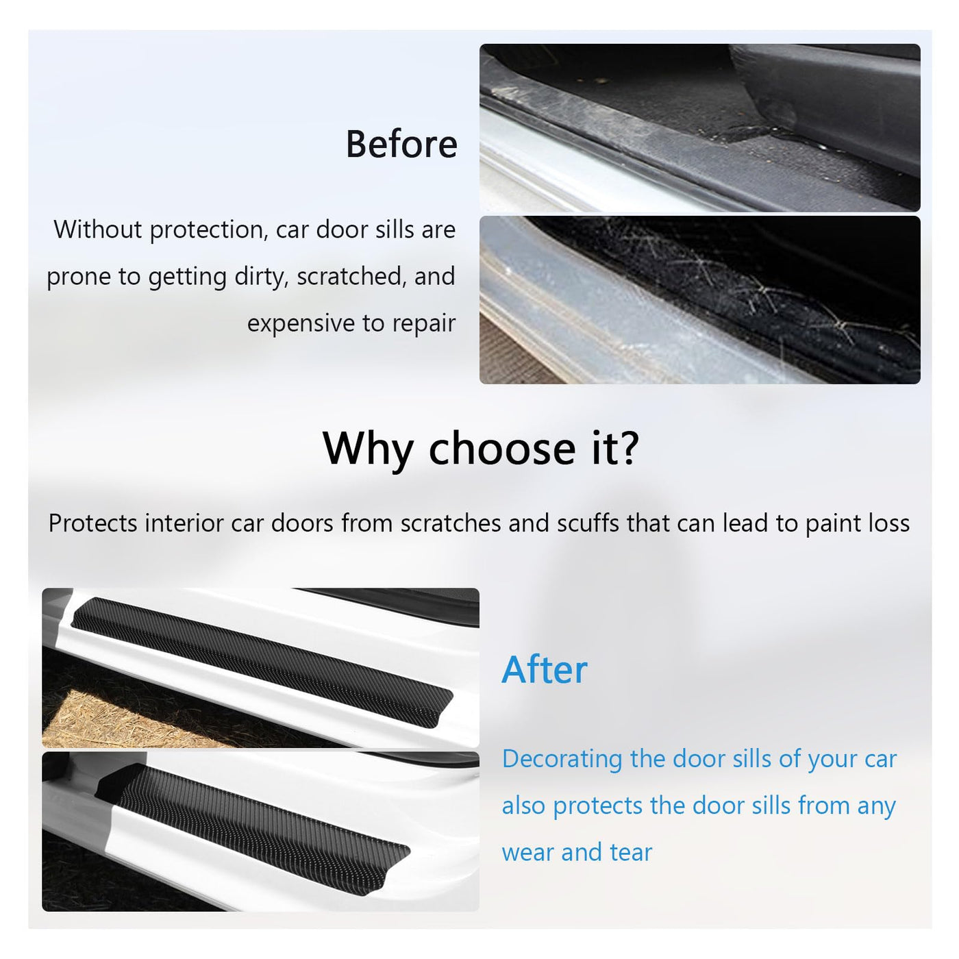 Dickno 4 PCS Car Door Sill Protector, 4D Carbon Fiber Auto Door Entry Edge Guard Protection Trim, Anti-Scratch Threshold Cover S