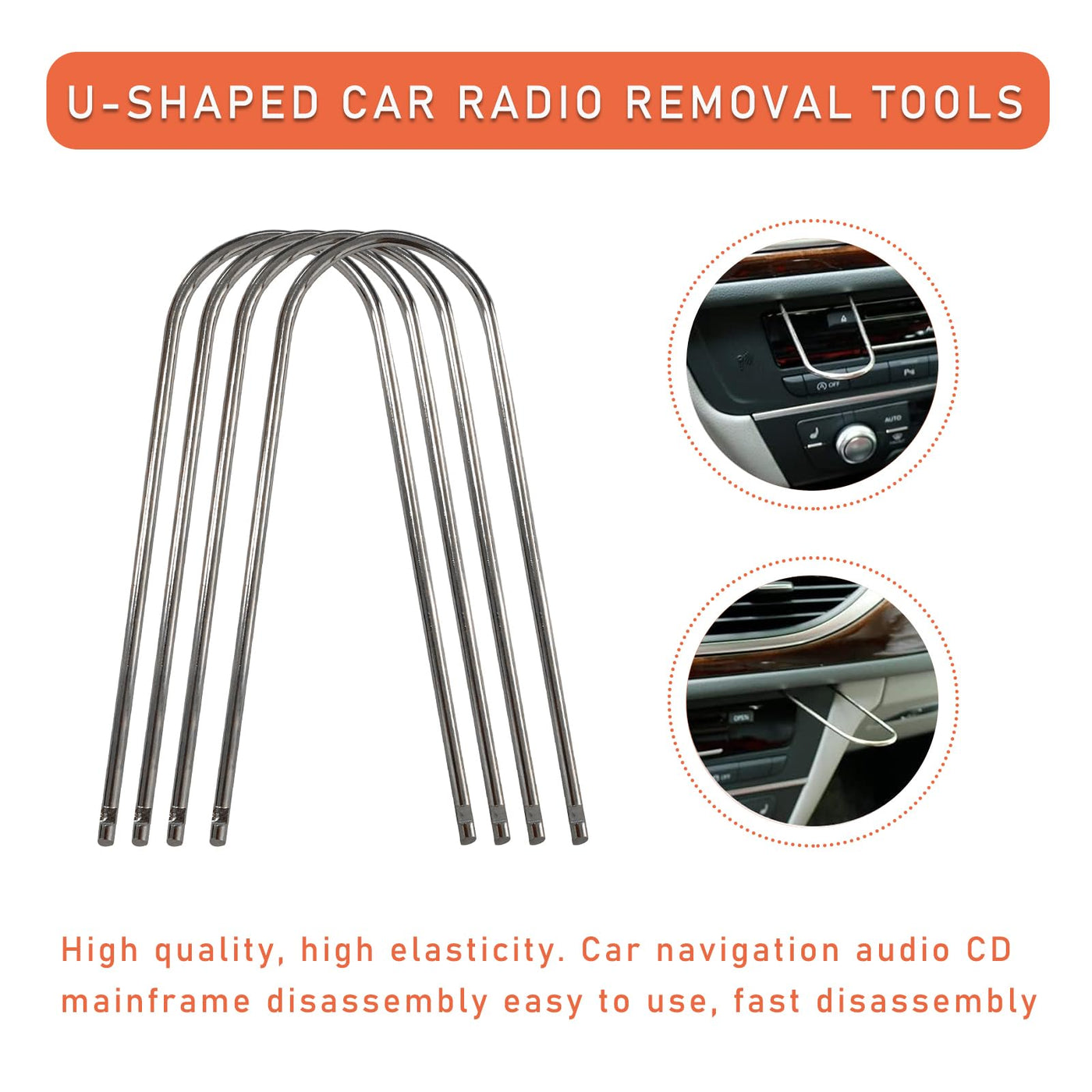 Dickno 4 Pcs Car Radio Removal Pry Tool, U-Shaped Stainless Steel Auto Stereo Release Tool Kit, Universal Radio Remover For Disa