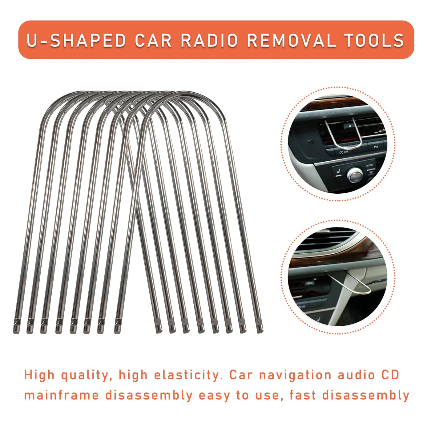 Dickno 8 Pcs Car Radio Removal Pry Tool, U-Shaped Stainless Steel Auto Stereo Release Tool Kit, Universal Radio Remover For Disa