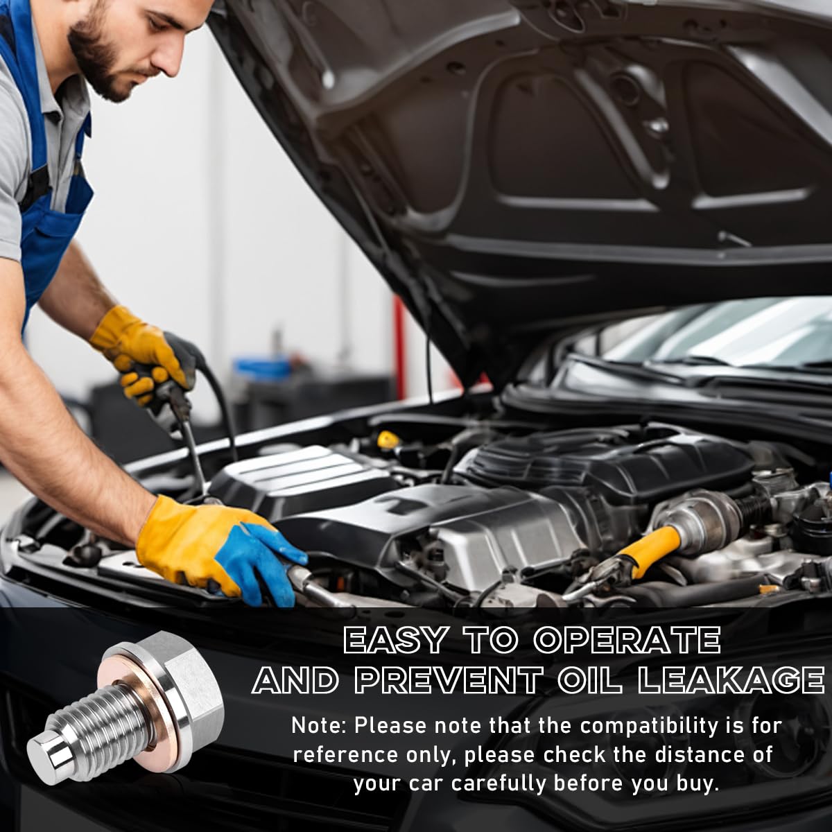 Specification: Material: Aluminum Alloy, Magnet Quantity: 1 PCS Model: M12 1.25/ M12 1.75/ M14 1.5 Color: Silver Weight: 19 g Package Includes: 1 Oil Drain Plug, 5 Copper Gaskets Feature: Sealing, Leakproof, Durable Fit Type: Universal Fit More details about this product: -It prolongs the use of the engine and ensures safe running. -There are five copper washers, sufficient quantity to meet the use and replacement needs. They are also corrosion and rust resistant and will last a long time. -It installs more tightly than plastic or rubber seals.